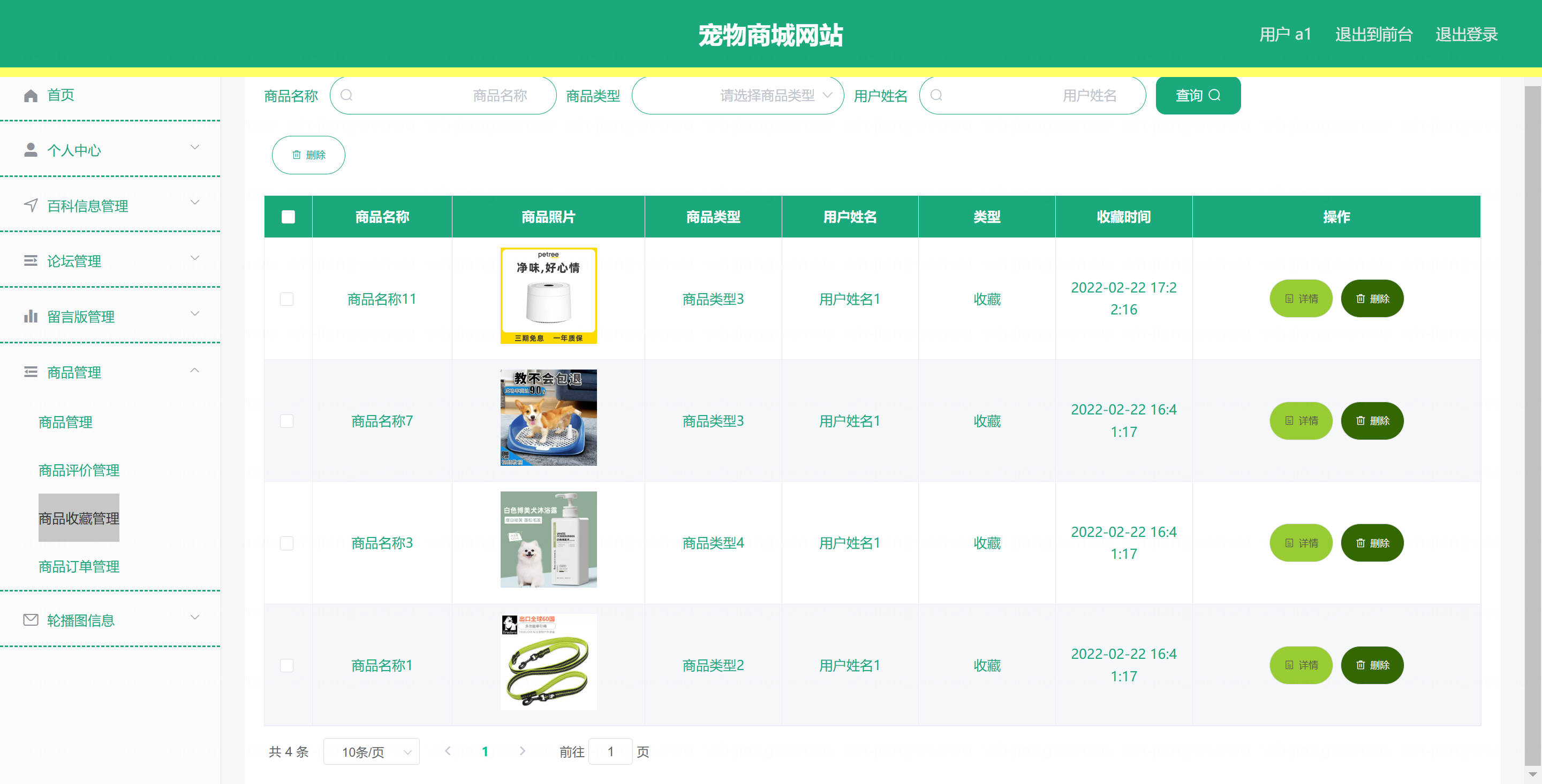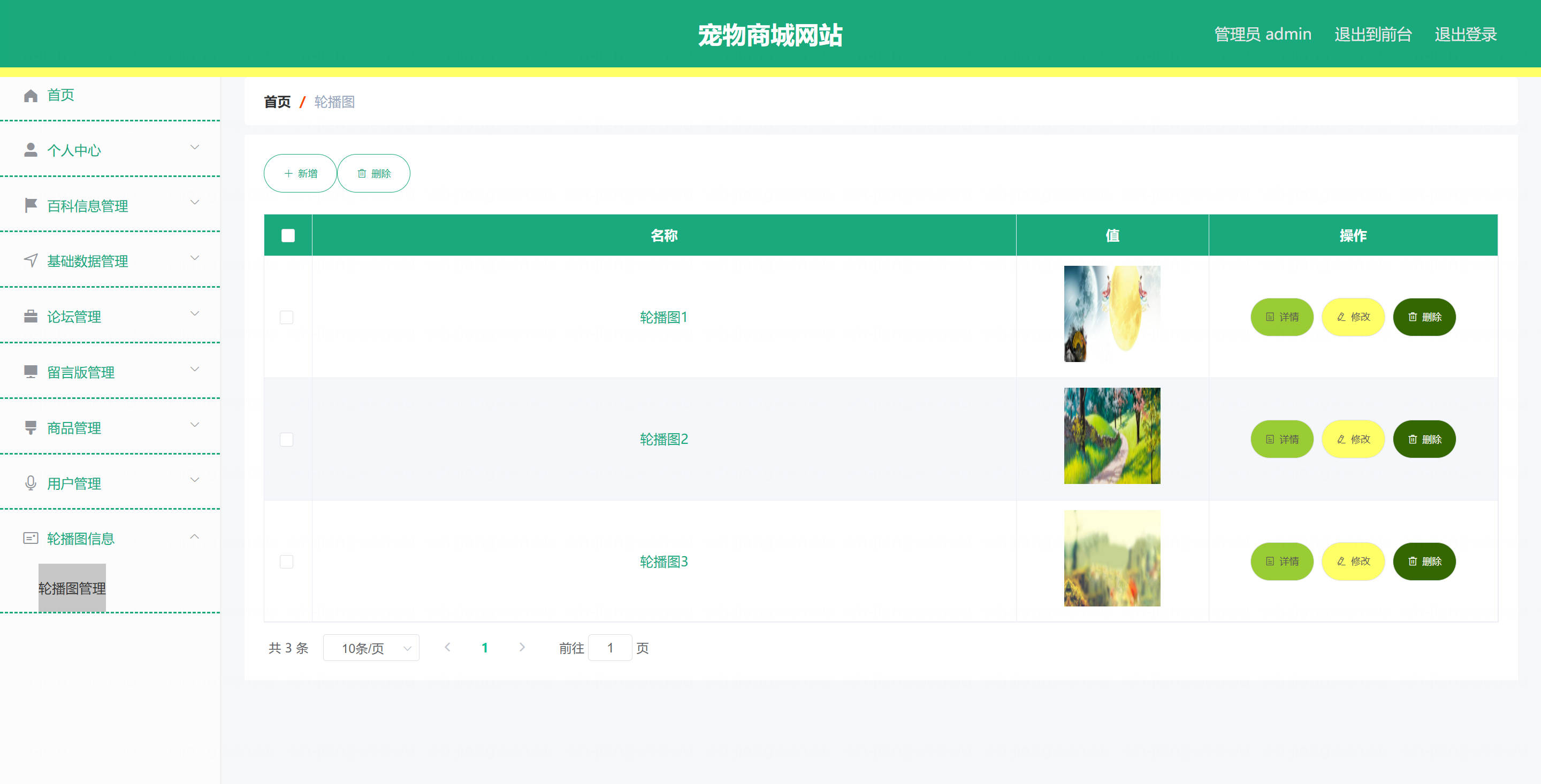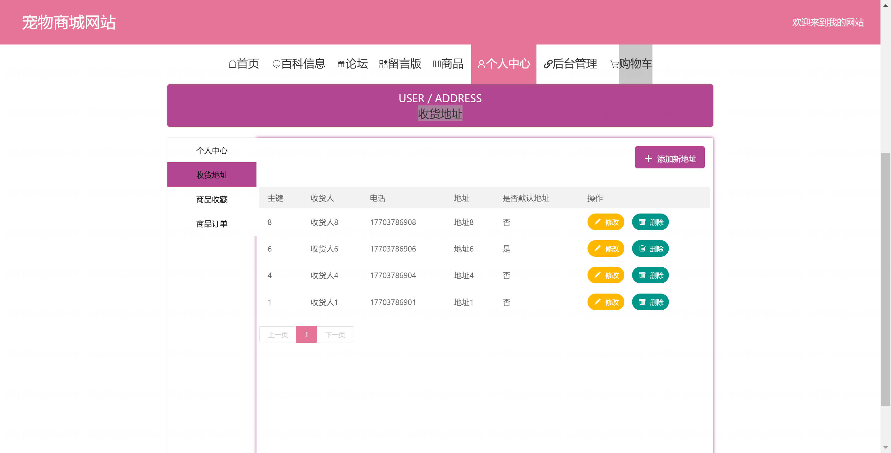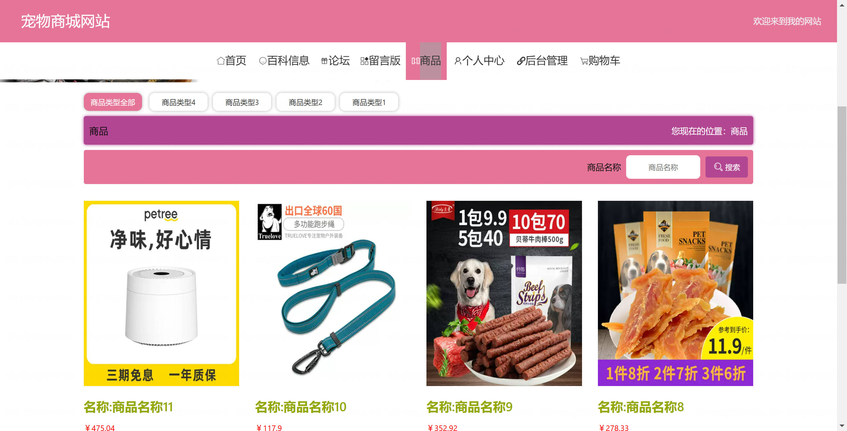 基于SpringBoot+Vue的宠物商城网站,系统角色为管理员、用户,主要功能如下