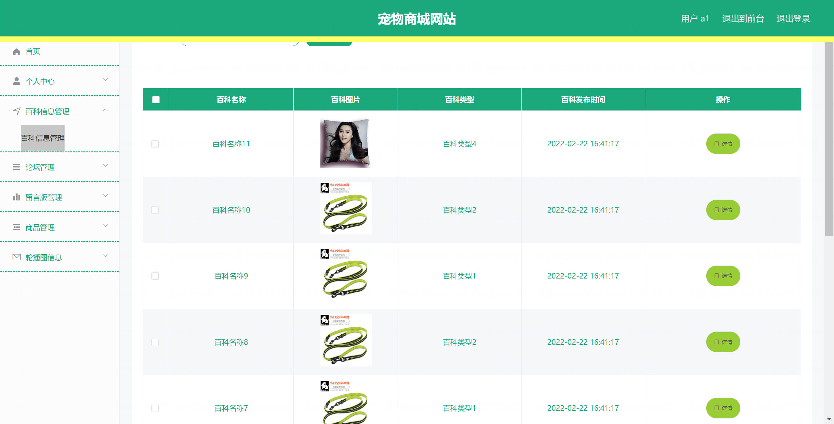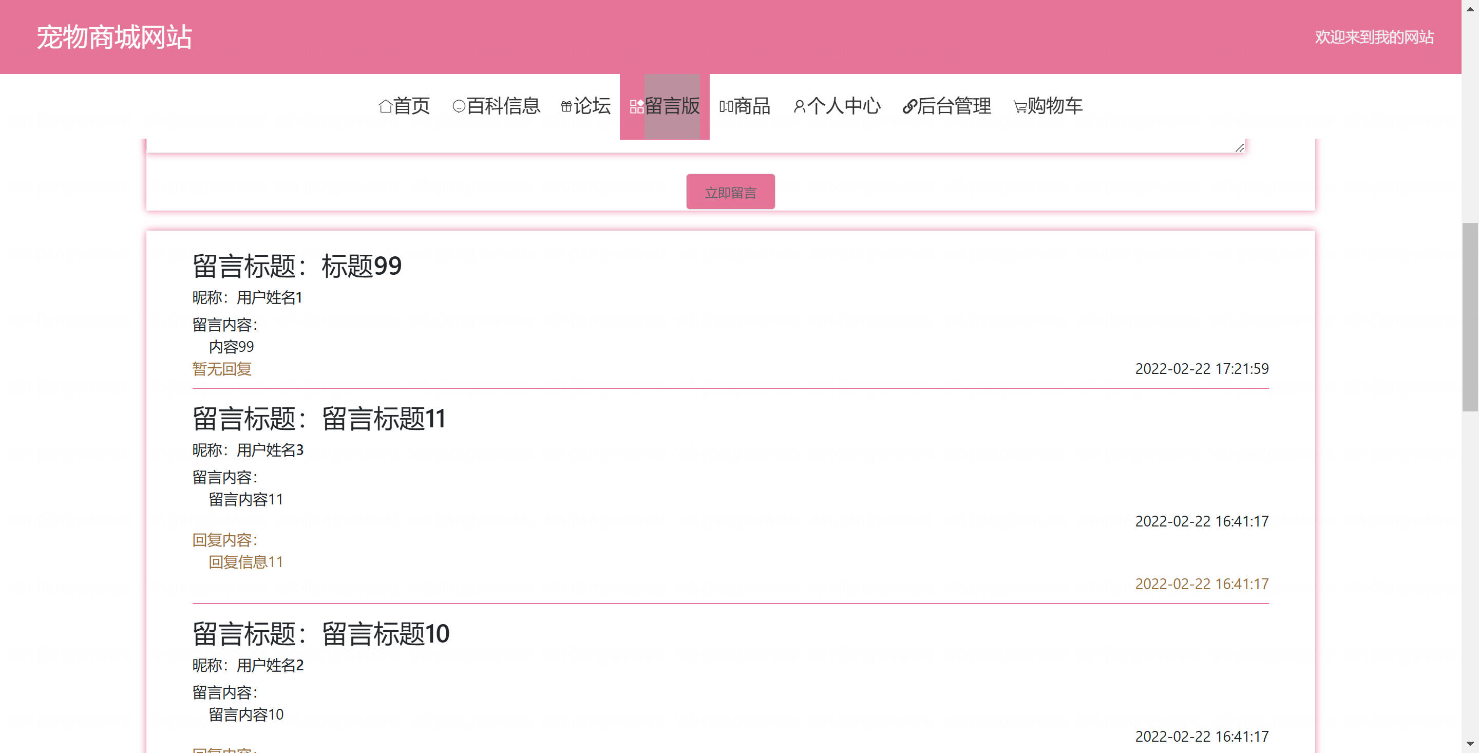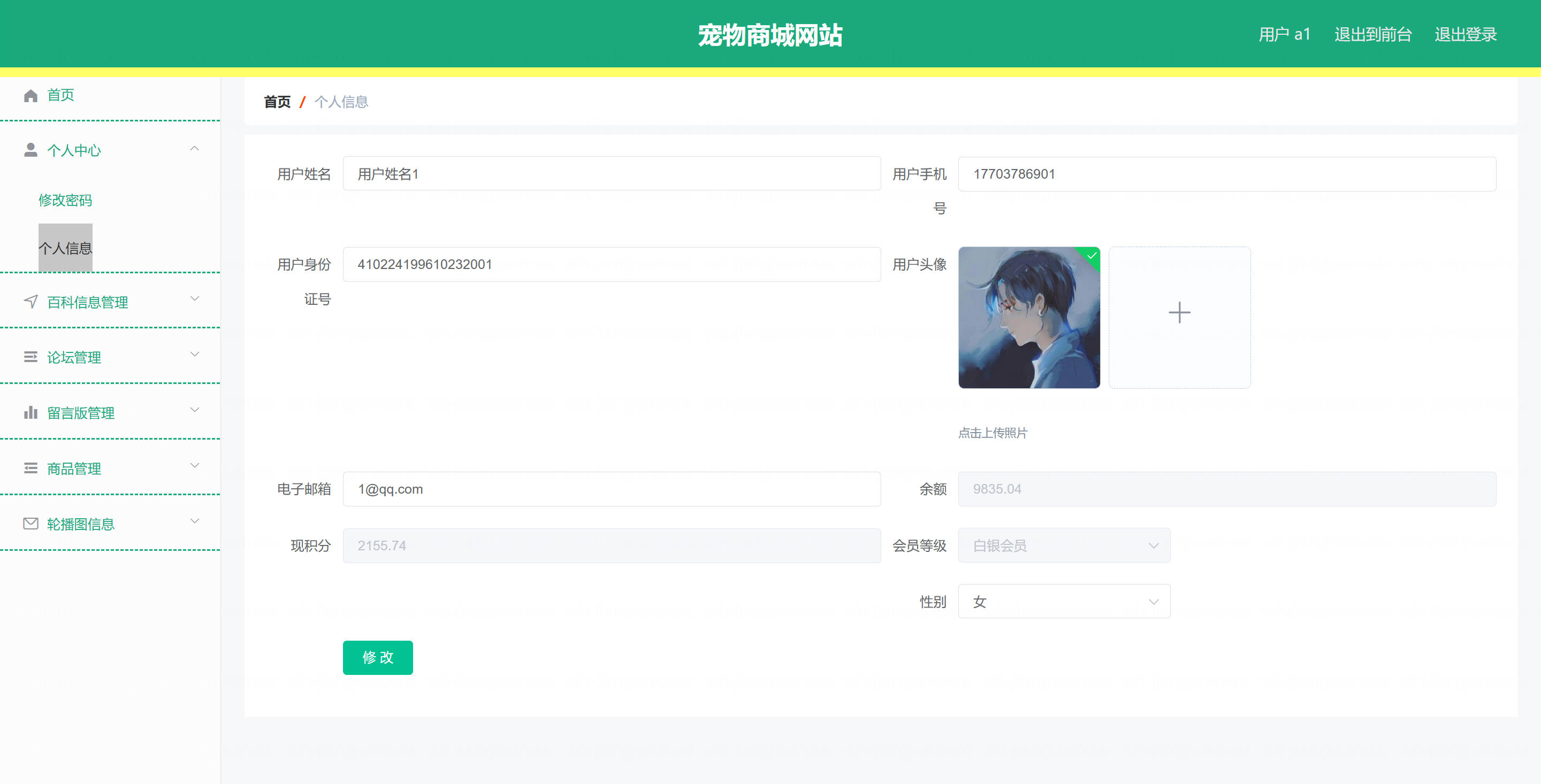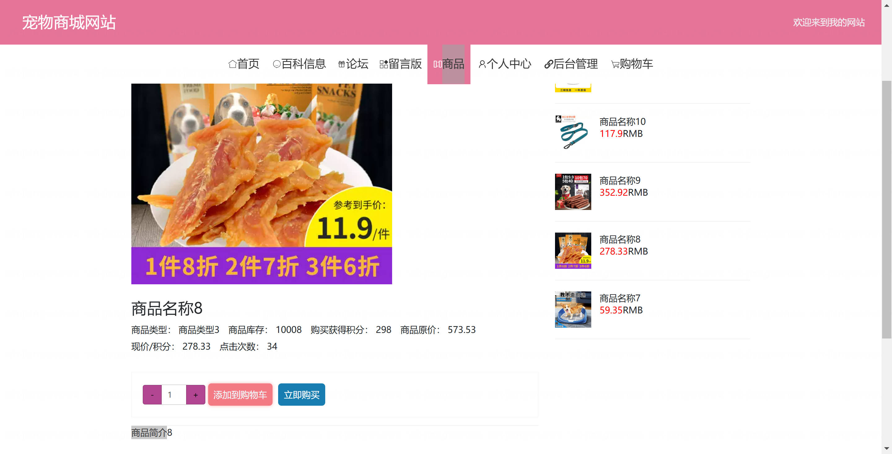 基于SpringBoot+Vue的宠物商城网站,系统角色为管理员、用户,主要功能如下