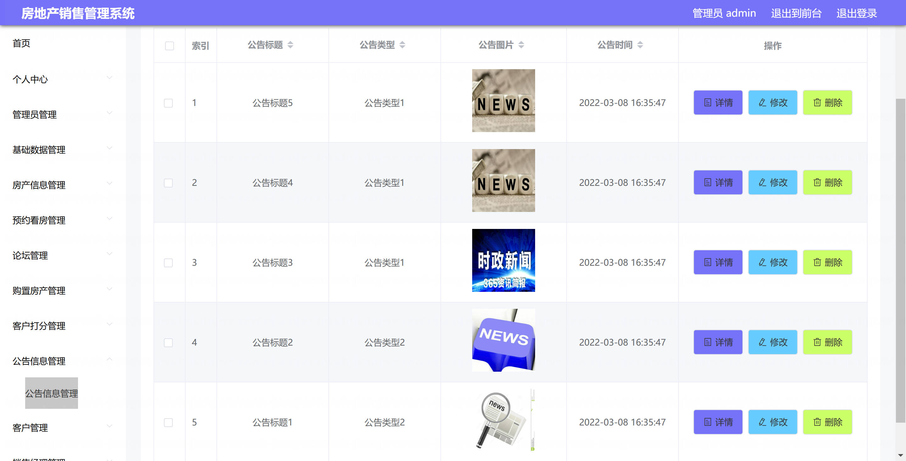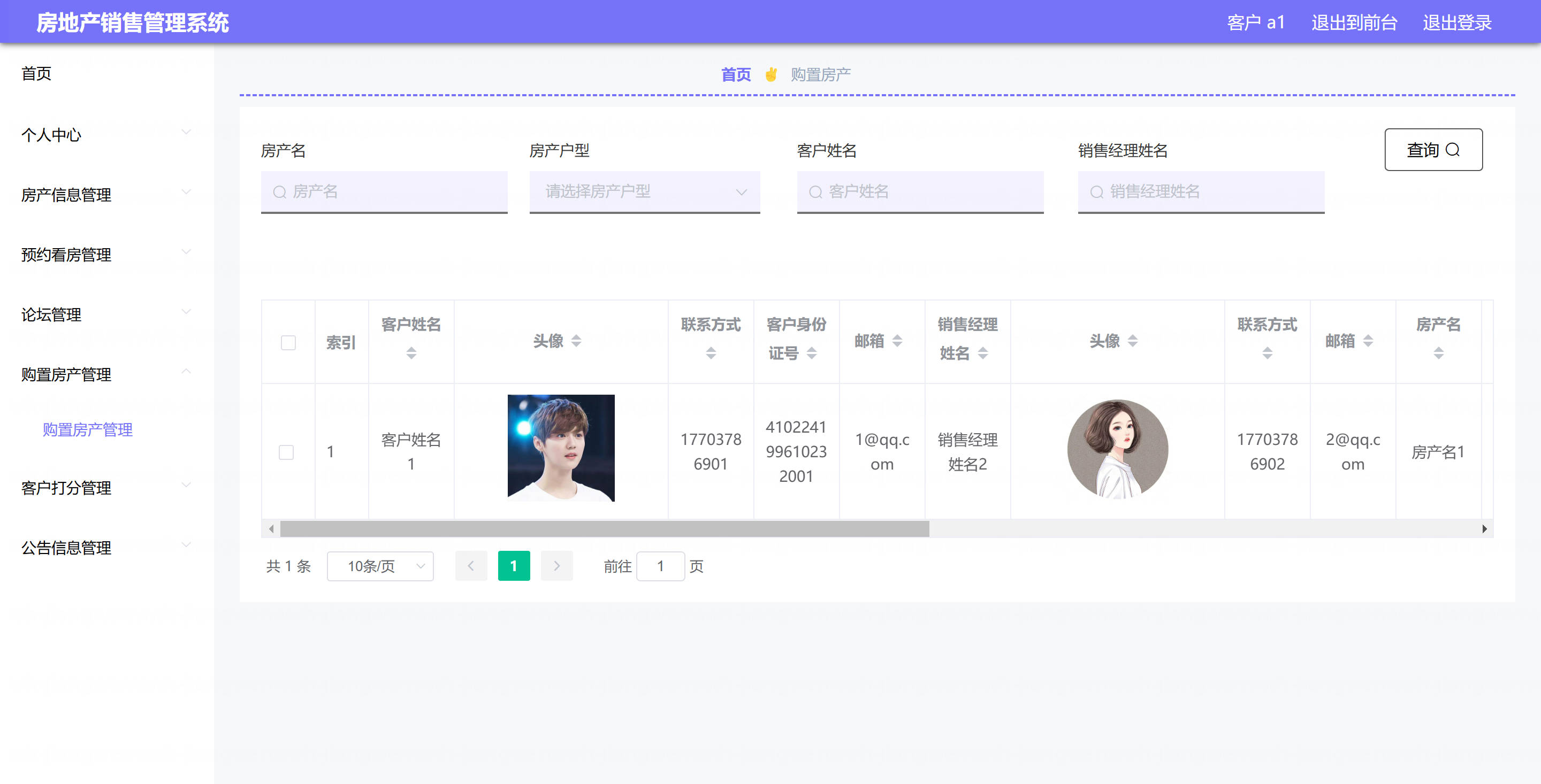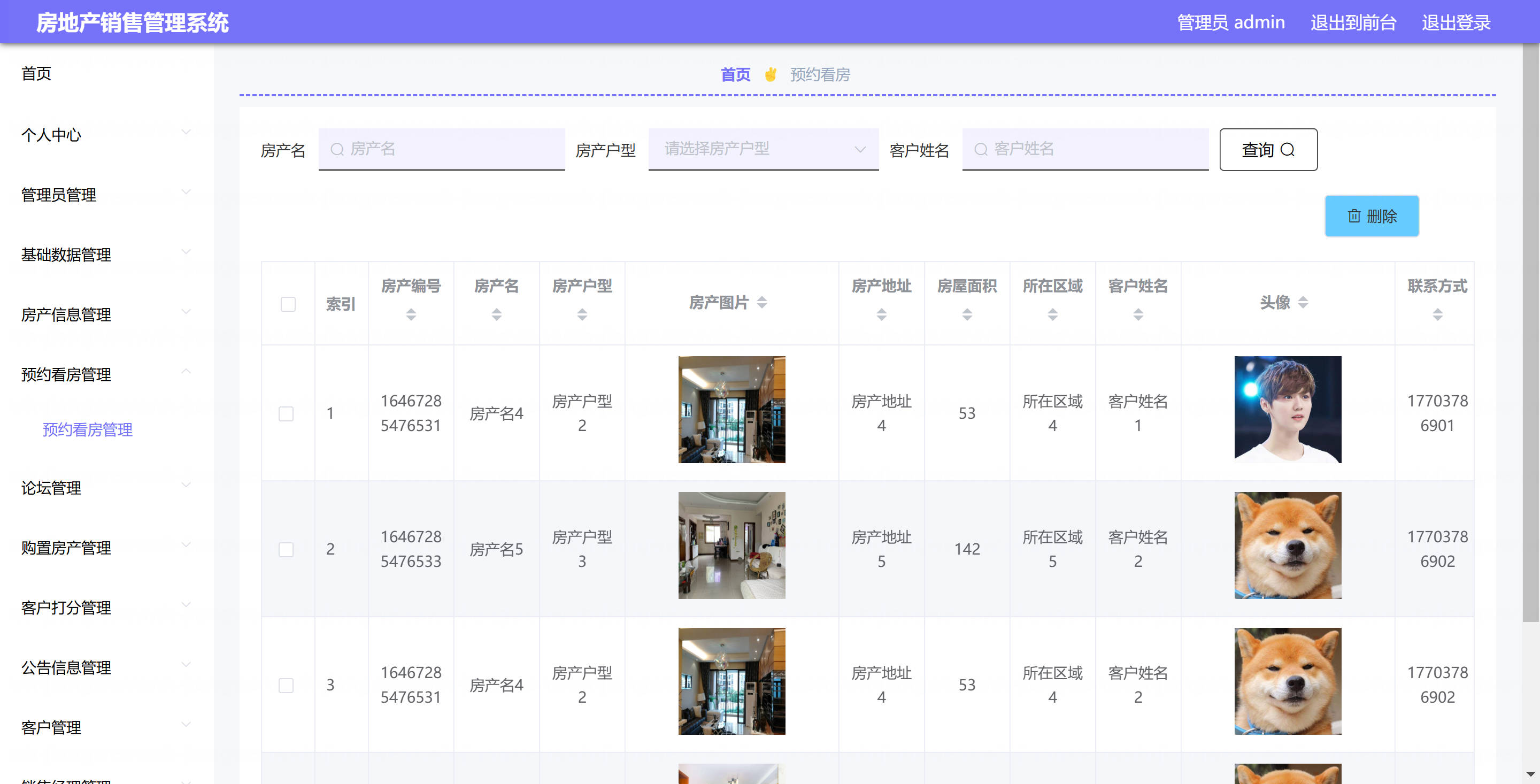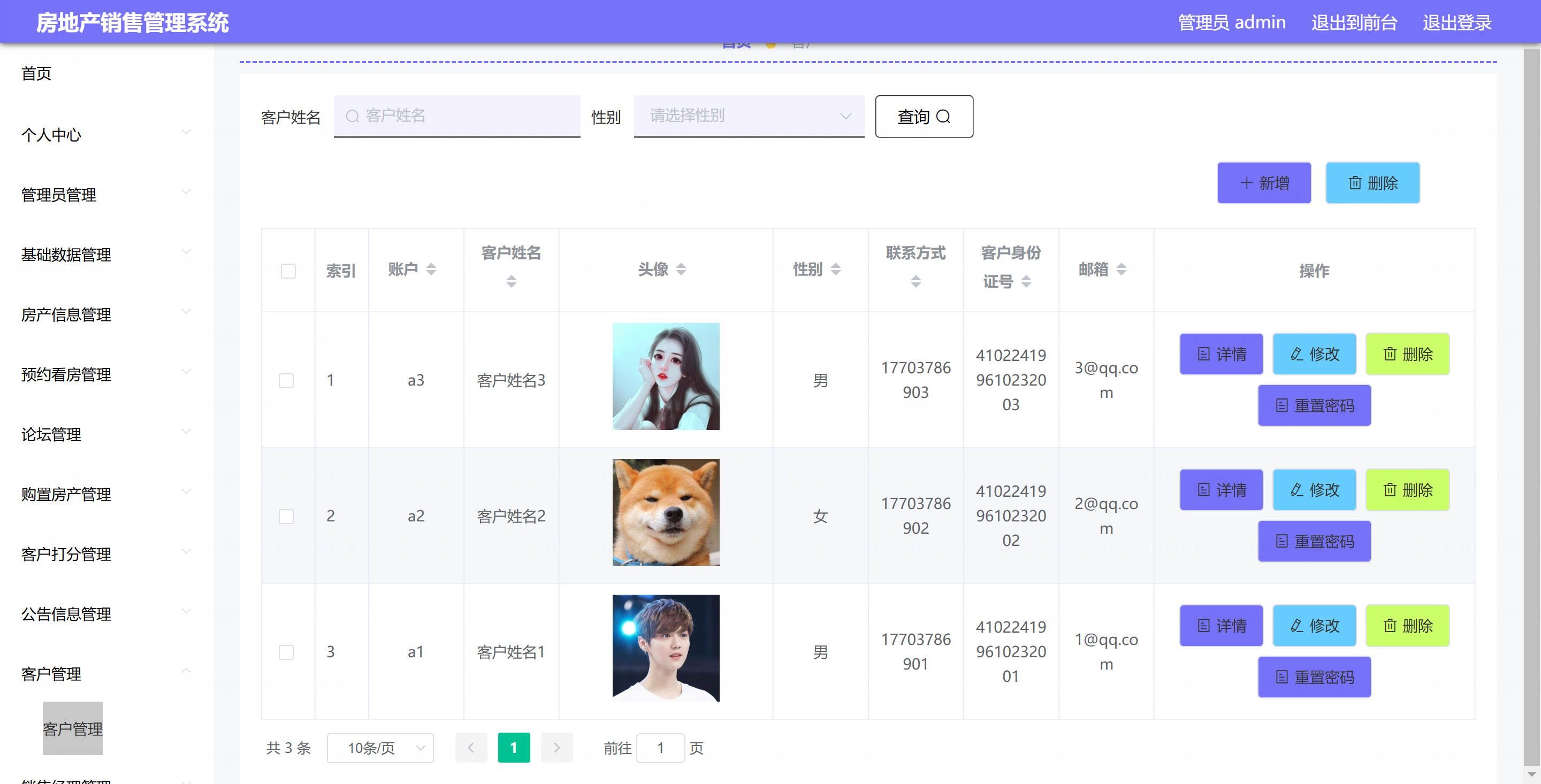 基于 Spring Boot 的房地产销售管理系统,系统角色为管理员、销售经理、客户,主要功能如下