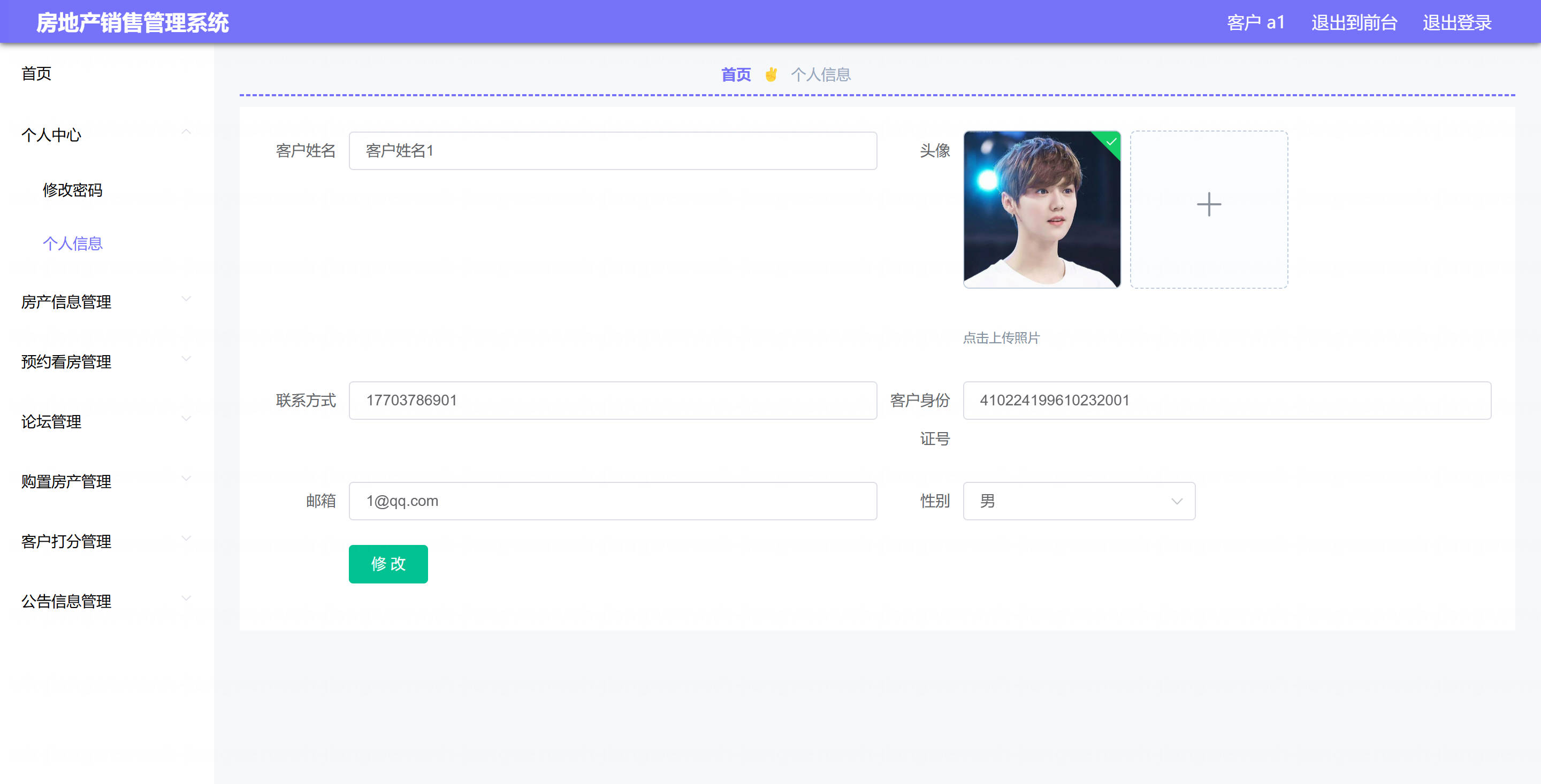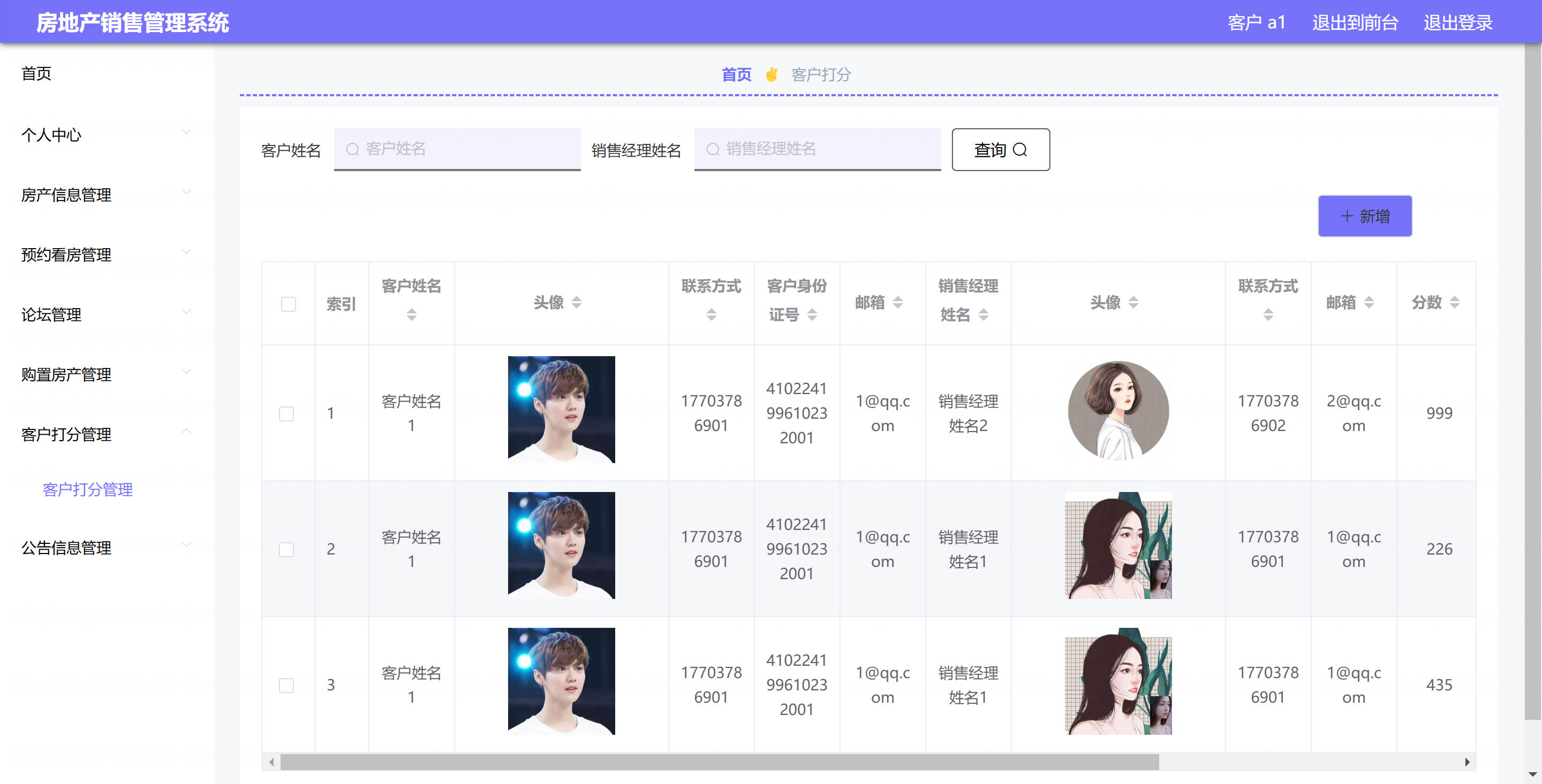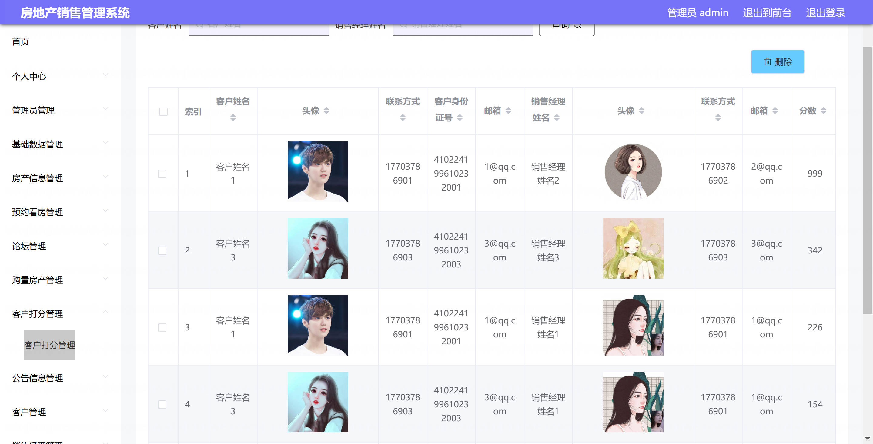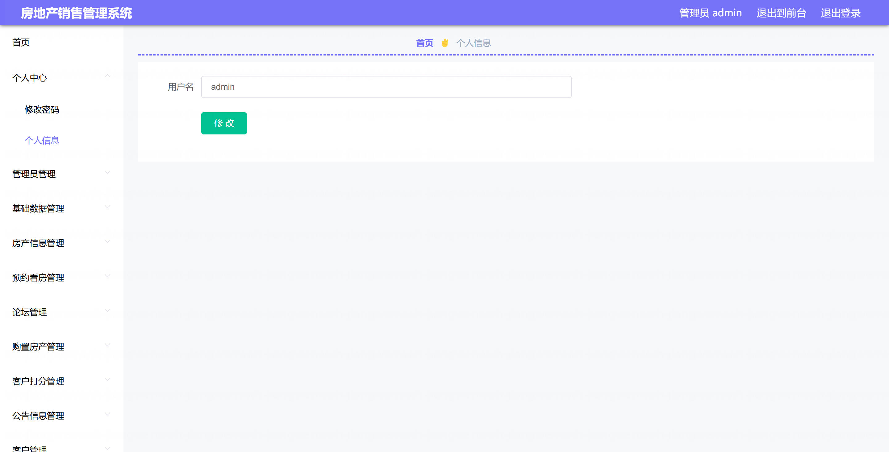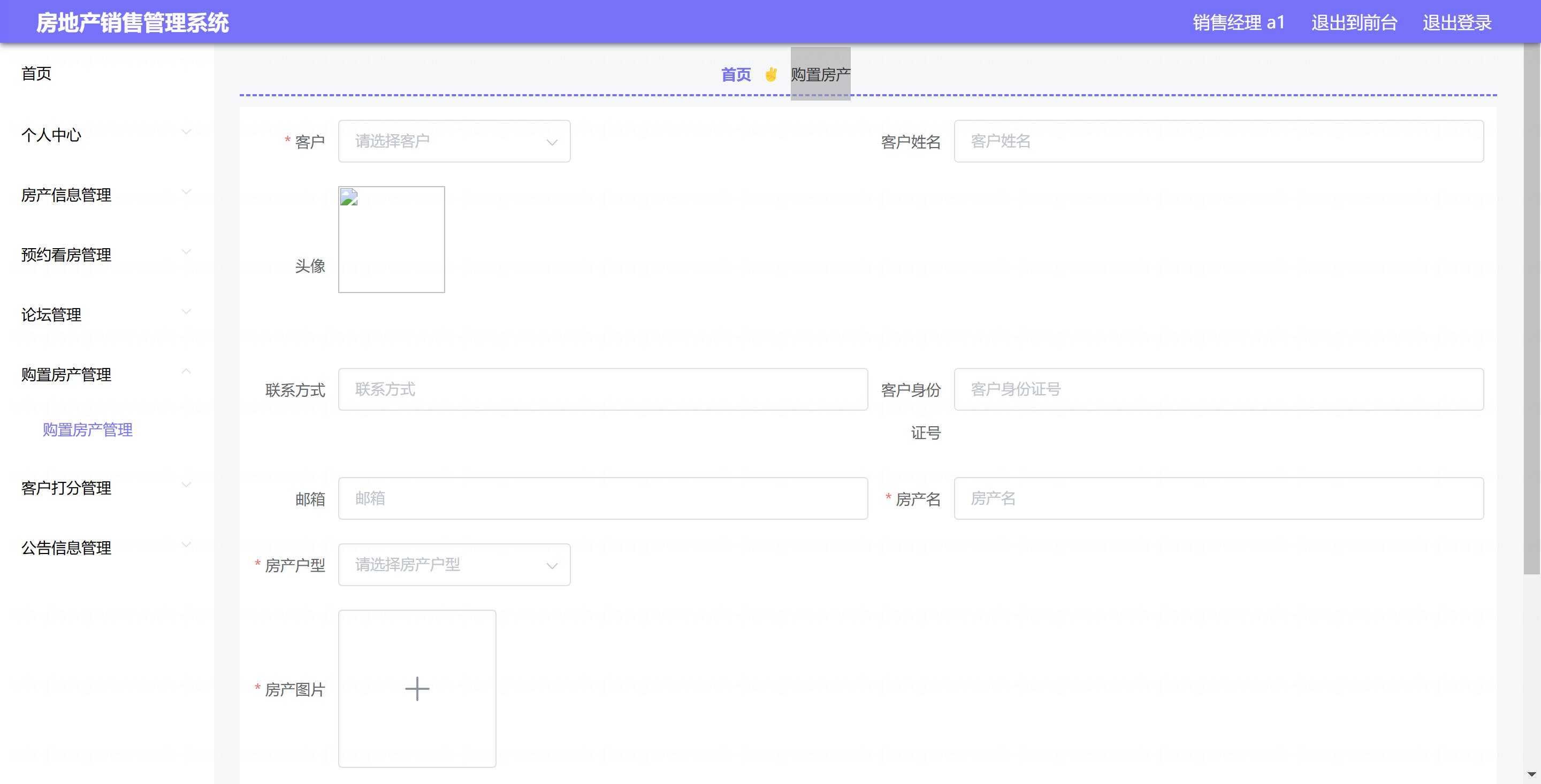 基于 Spring Boot 的房地产销售管理系统,系统角色为管理员、销售经理、客户,主要功能如下