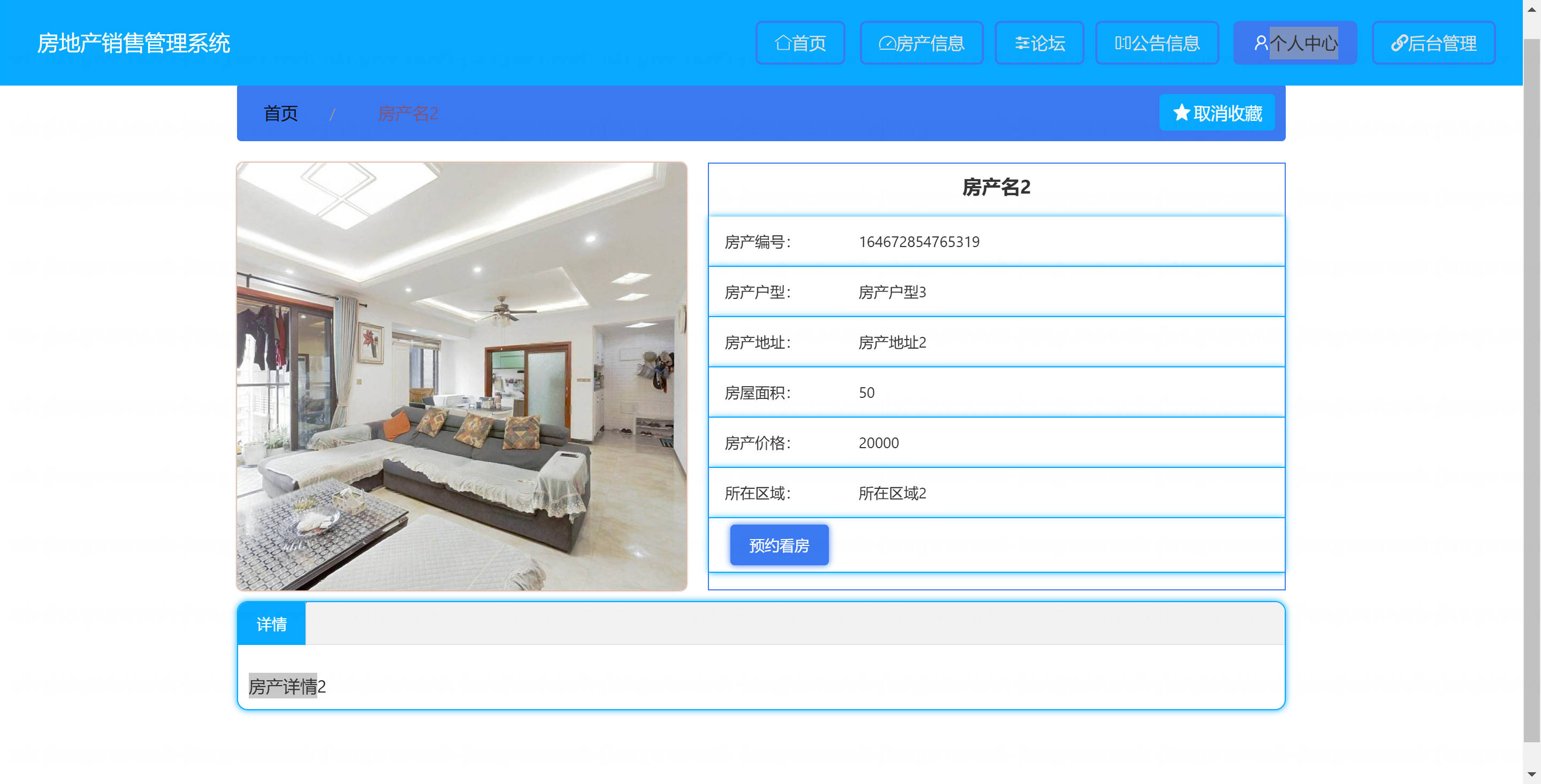 管理员: 基本操作:登录、修改密码、获取/修改个人信息 用户管理:用户列表/筛选、新增、修改、删除、查看详情、重置密码、获取 session 用户信息 房产管理:房产列表/筛选/分页、查看详情、后台新增/修改/删除、、前端详情展示 收藏管理:查看/管理用户房产收藏、删除、前端收藏/取消收藏 预约管理:预约列表/管理、查看详情、删除、前端预约管理 论坛管理:帖子增删改查、查看详情(含级联用户/客户/员工信息) 购置记录管理:购置房产记录的增删改查 公告/配置管理:轮播图与系统配置(增删改查、按 name 查询)