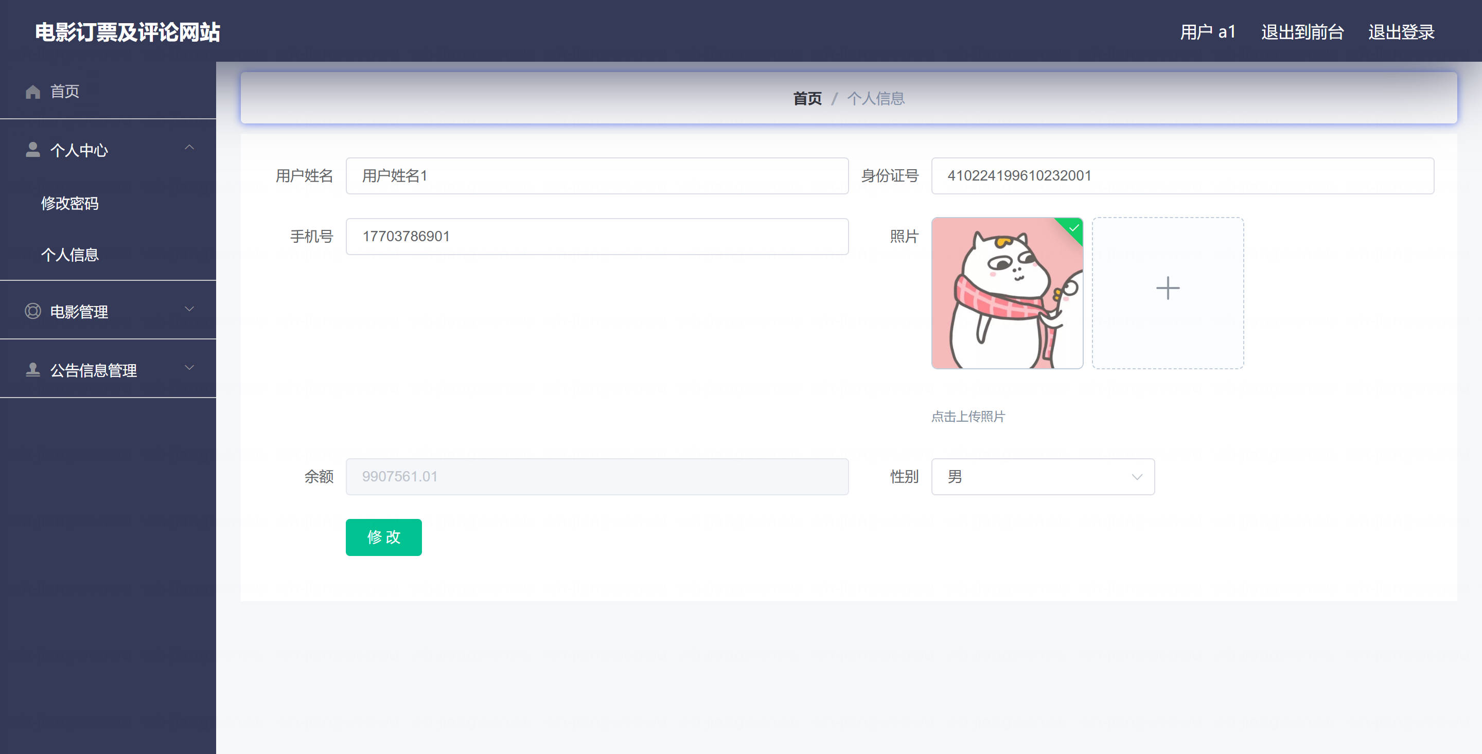 - 基本操作:登录、修改密码、获取/修改个人信息、登出。