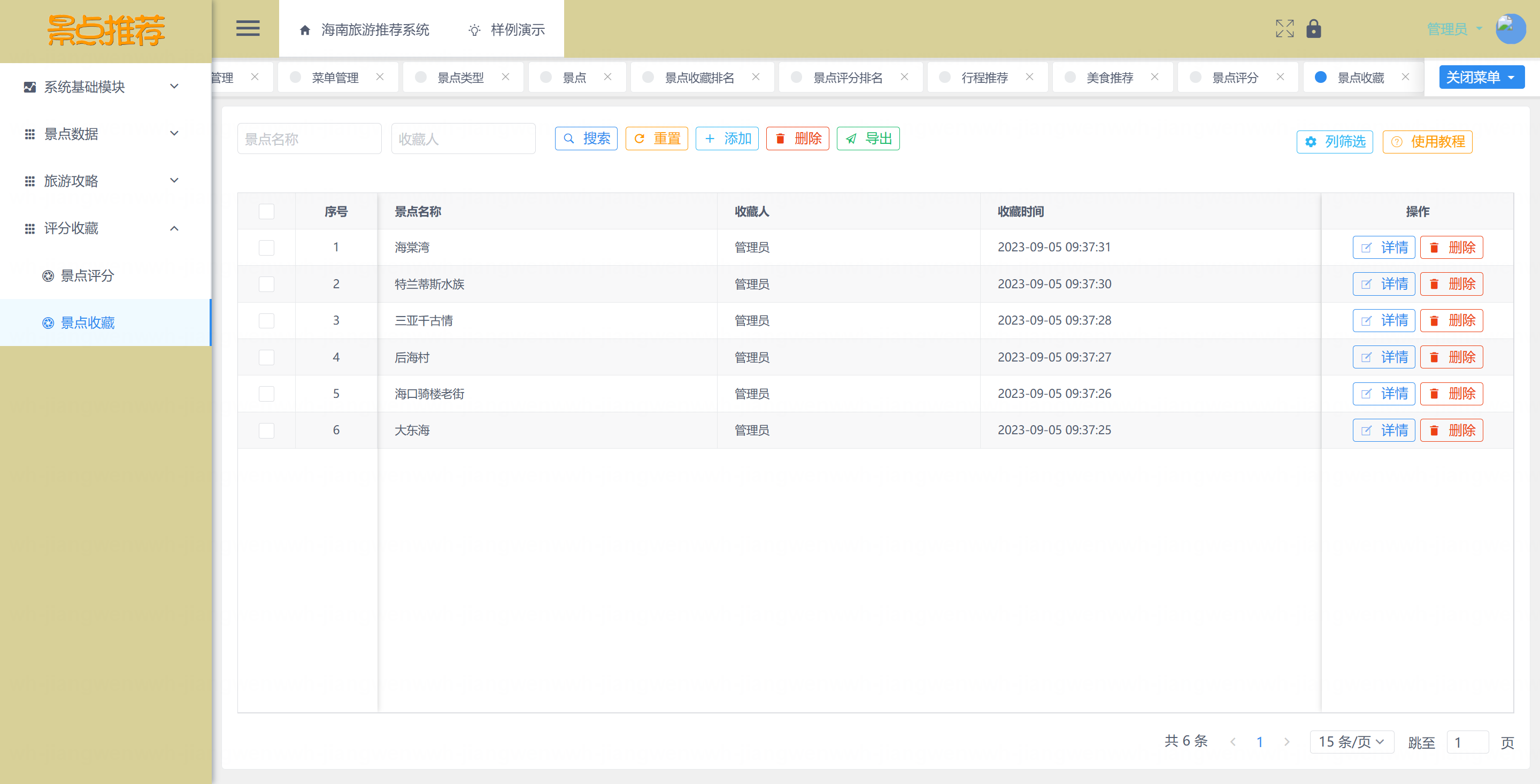 - 收藏功能:收藏/取消收藏景点、查看收藏列表。