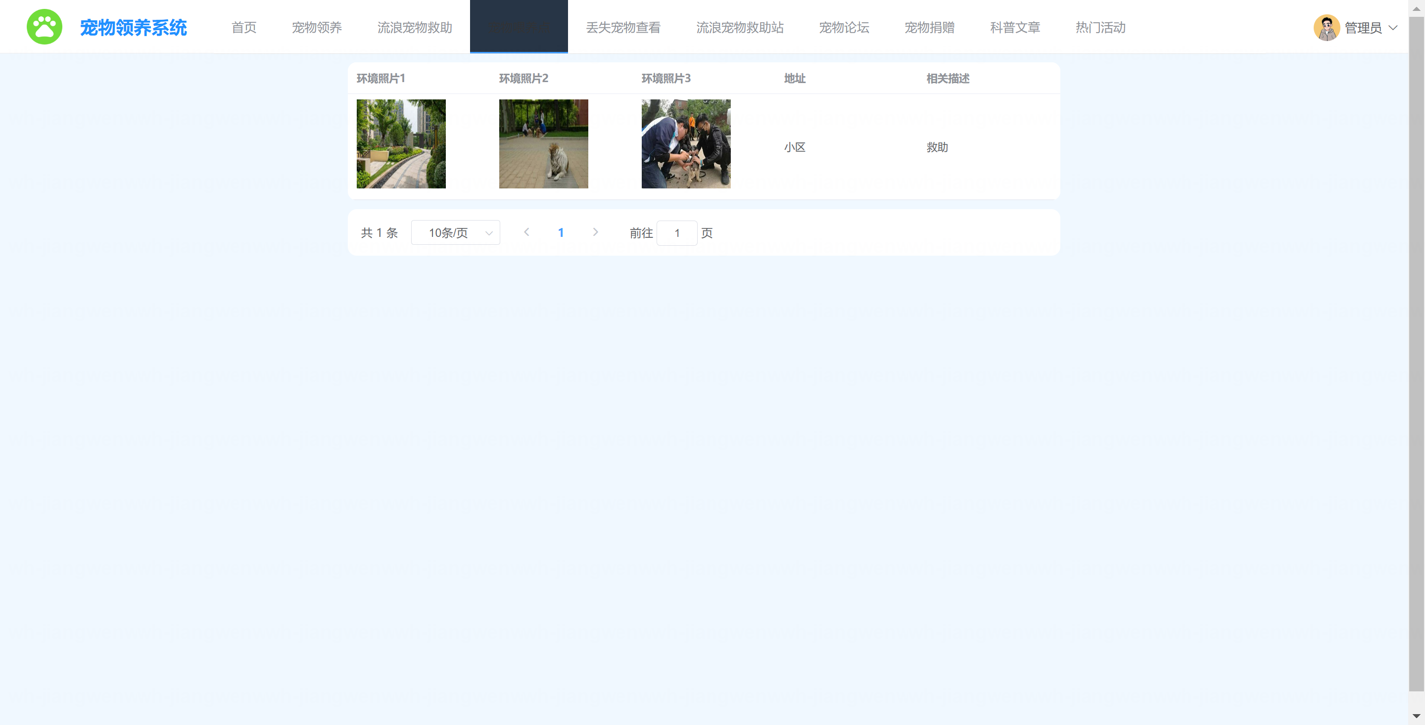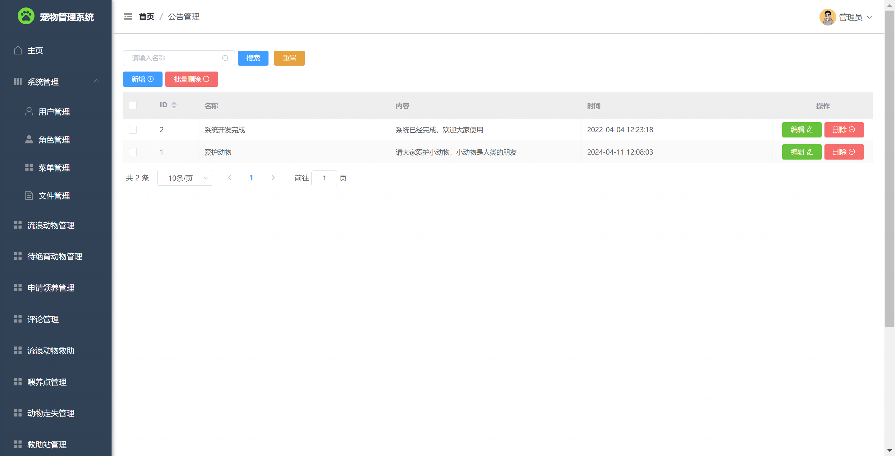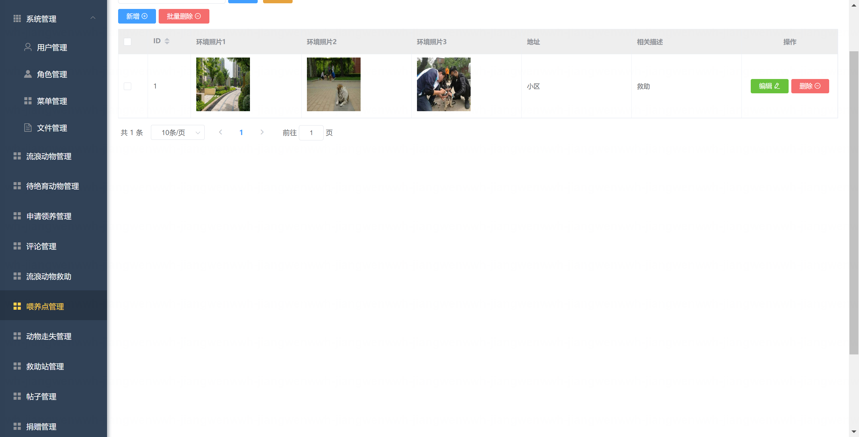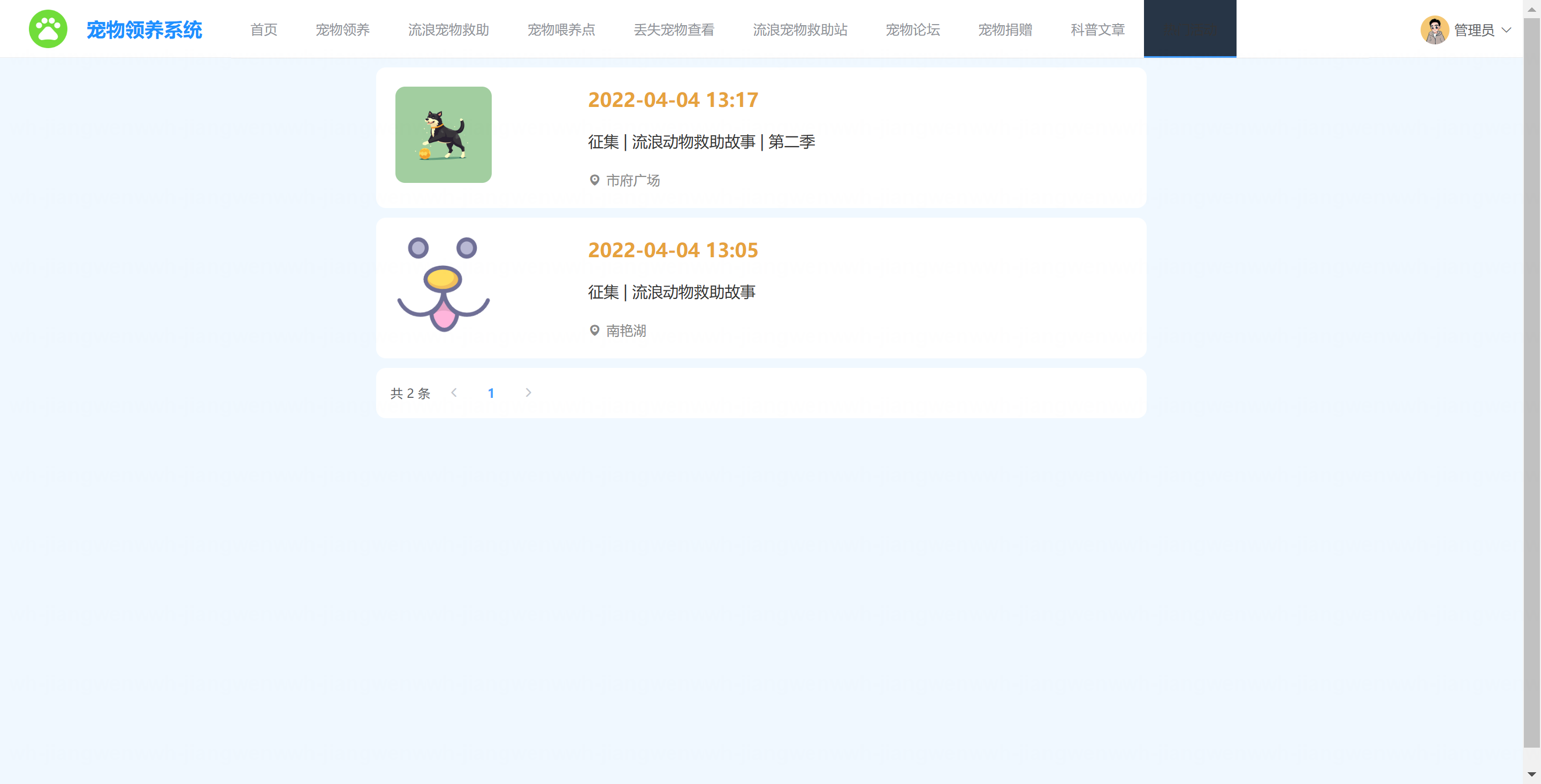 • 救助管理:流浪动物救助记录管理、救助状态更新。