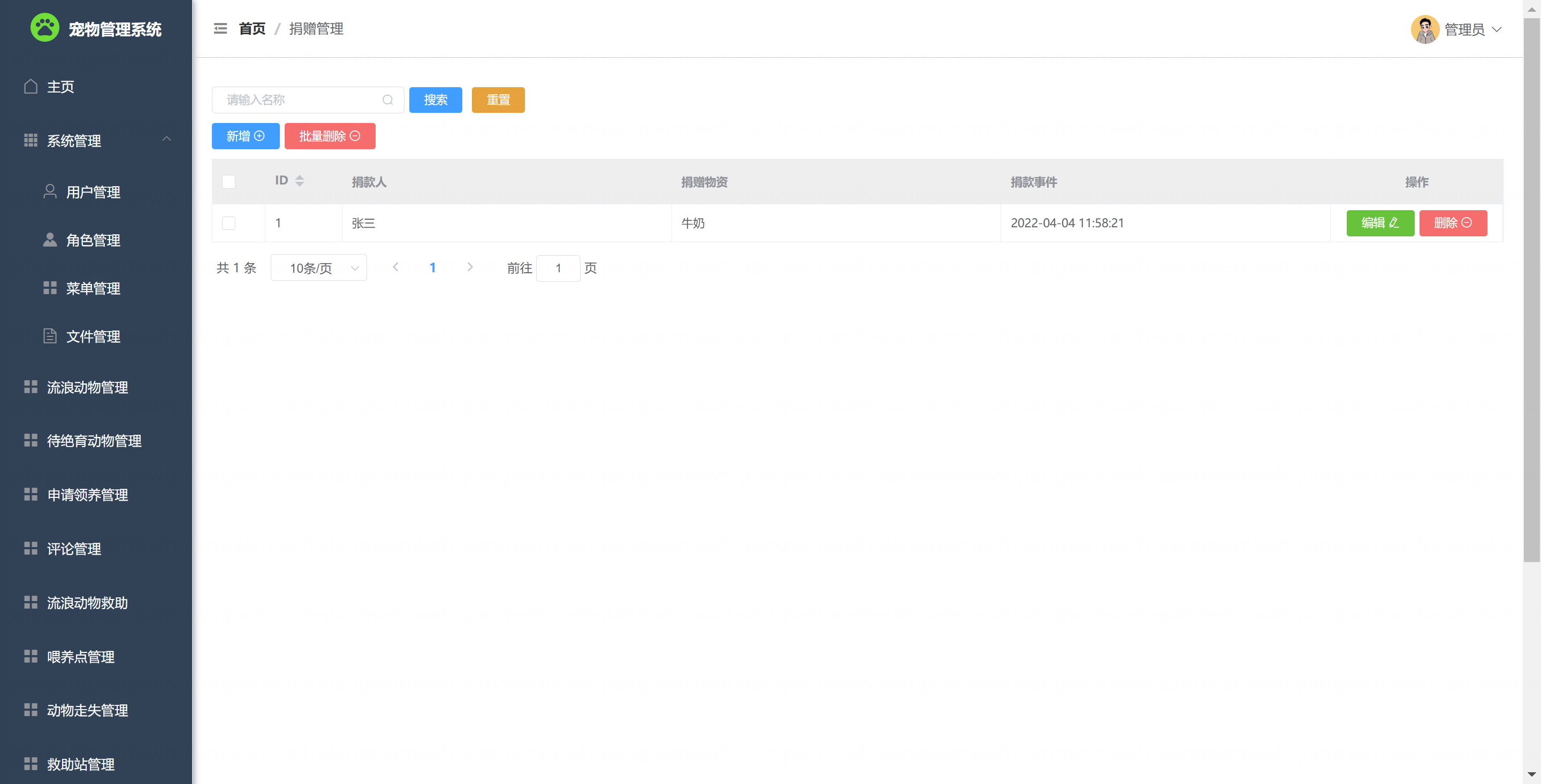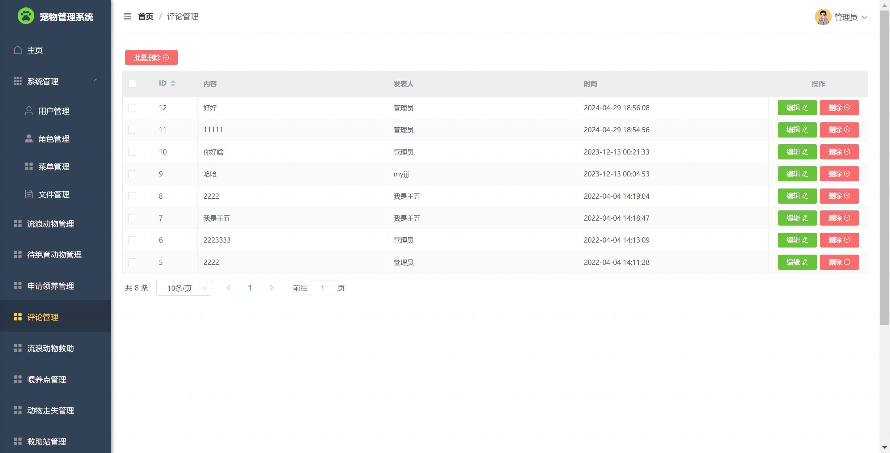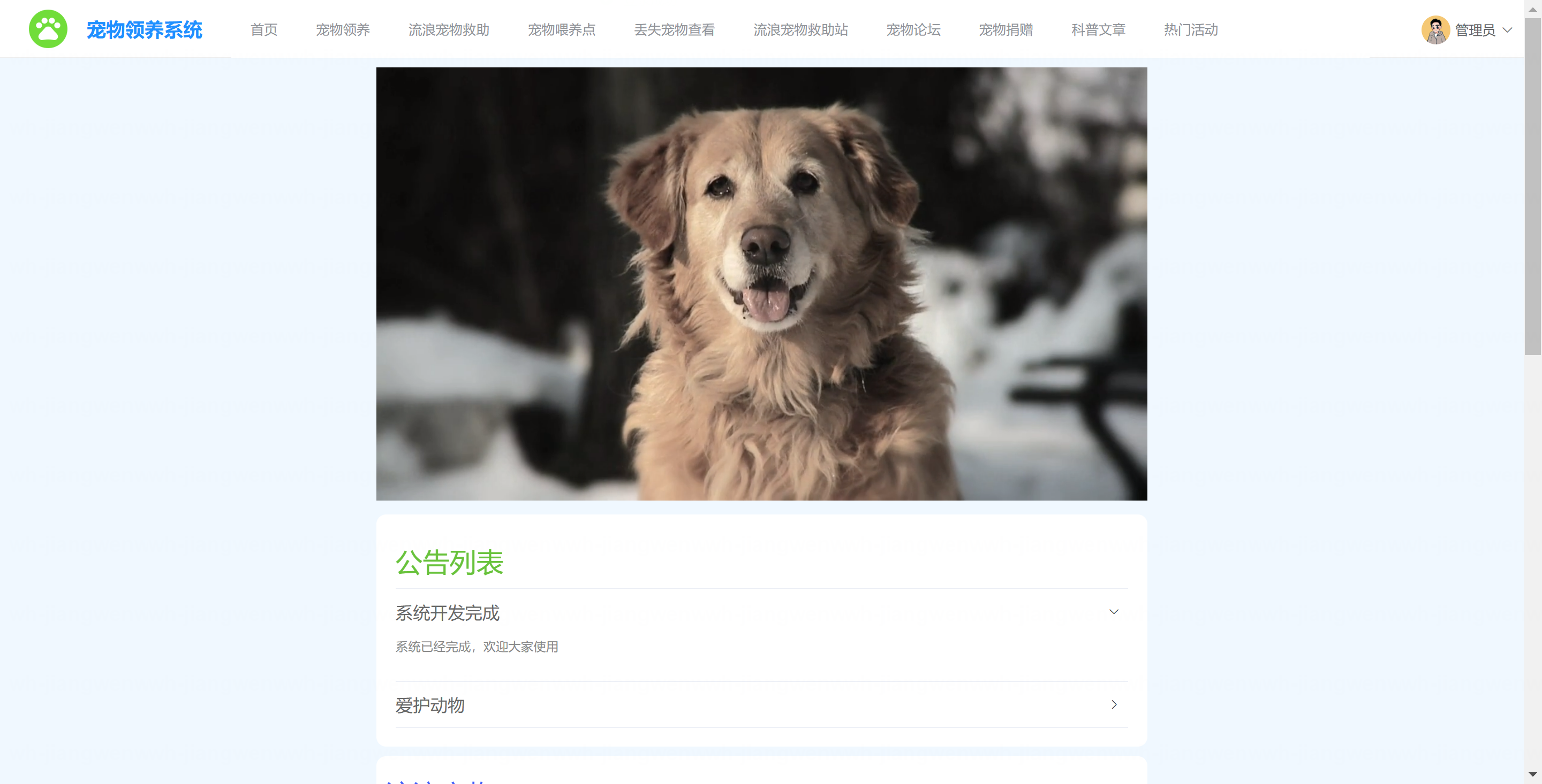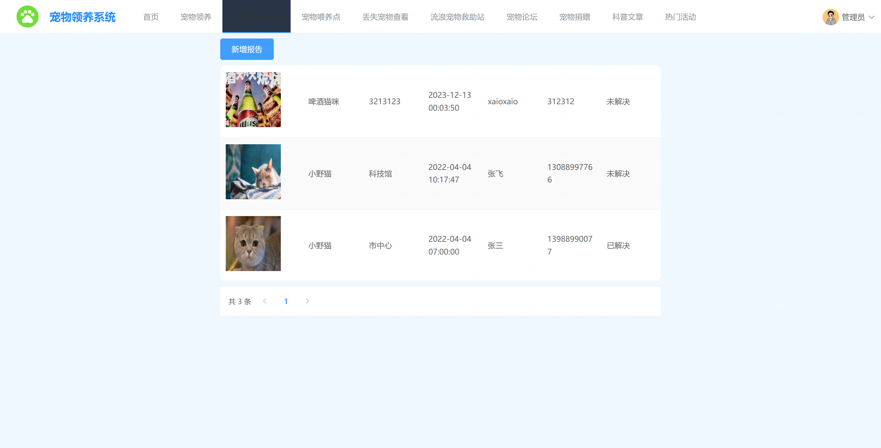 • 救助管理:流浪动物救助记录管理、救助状态更新。