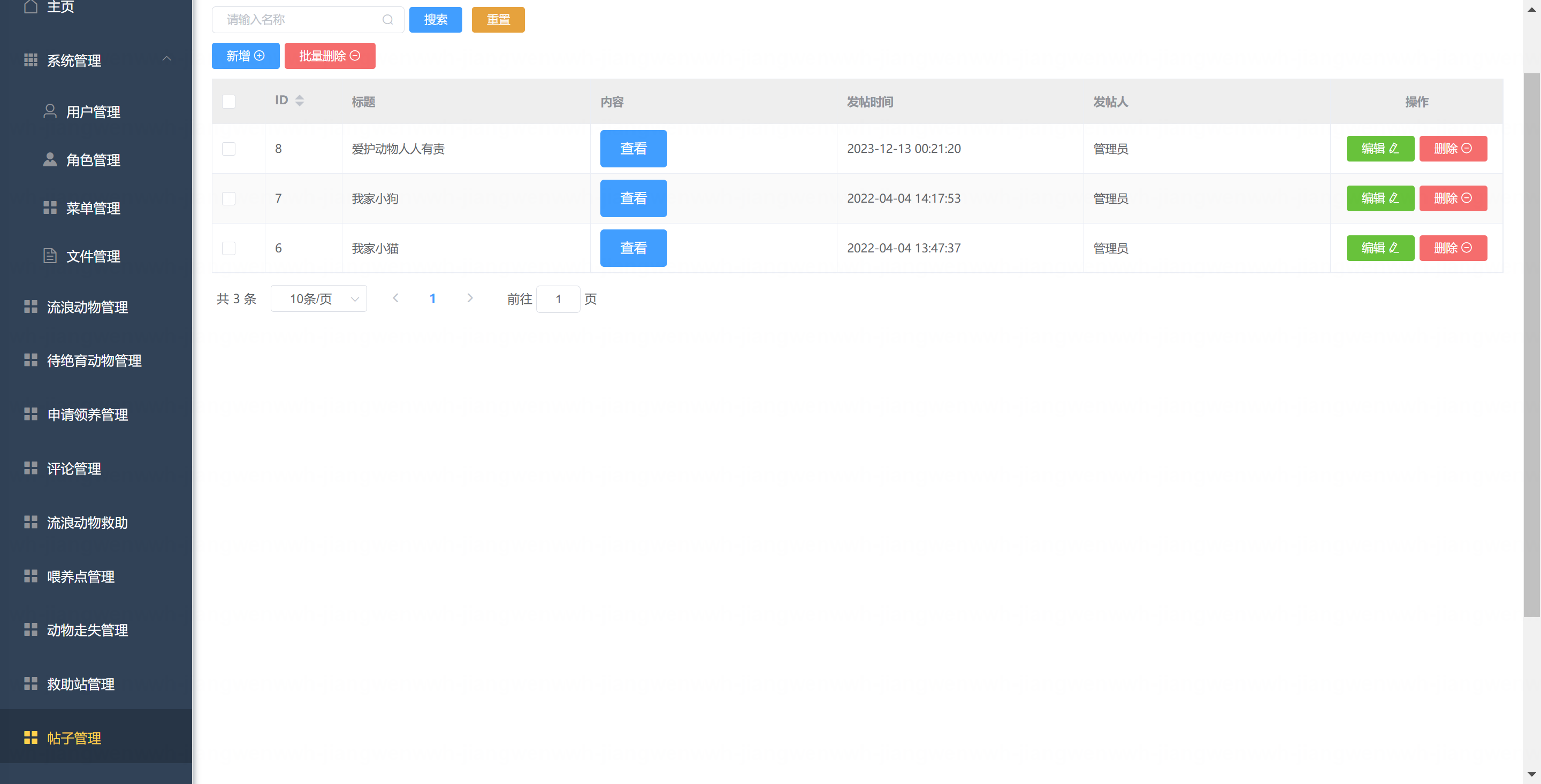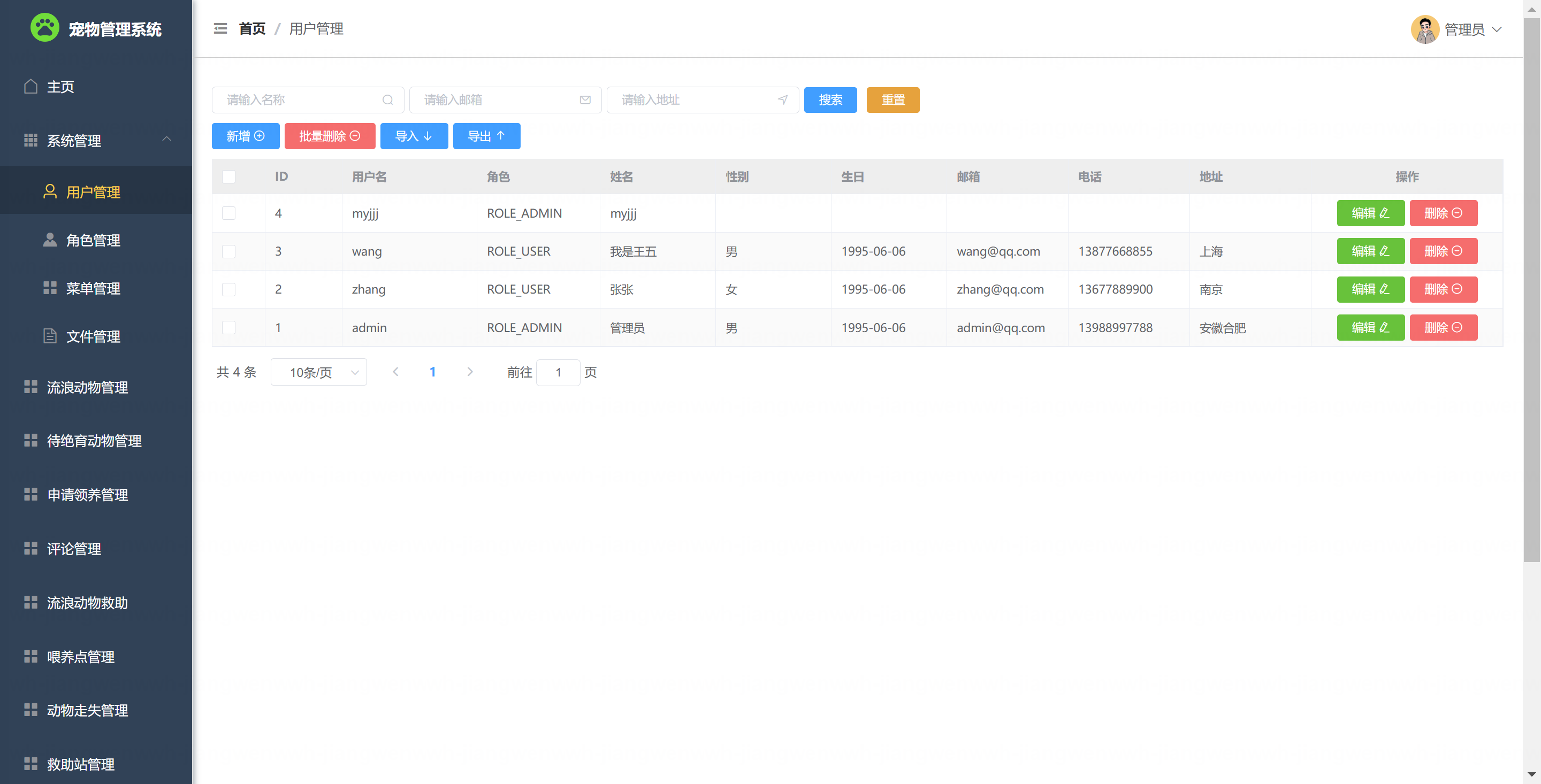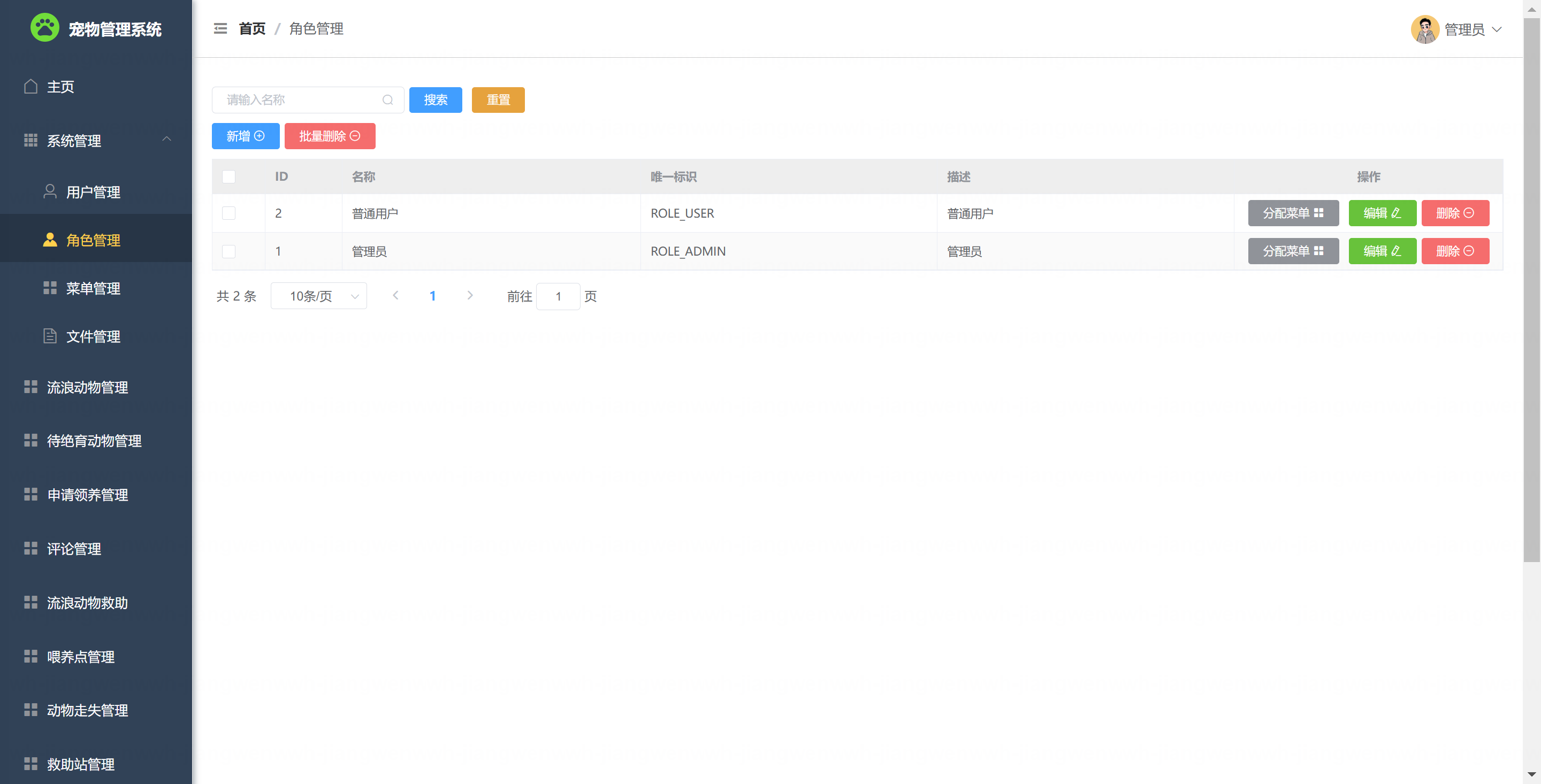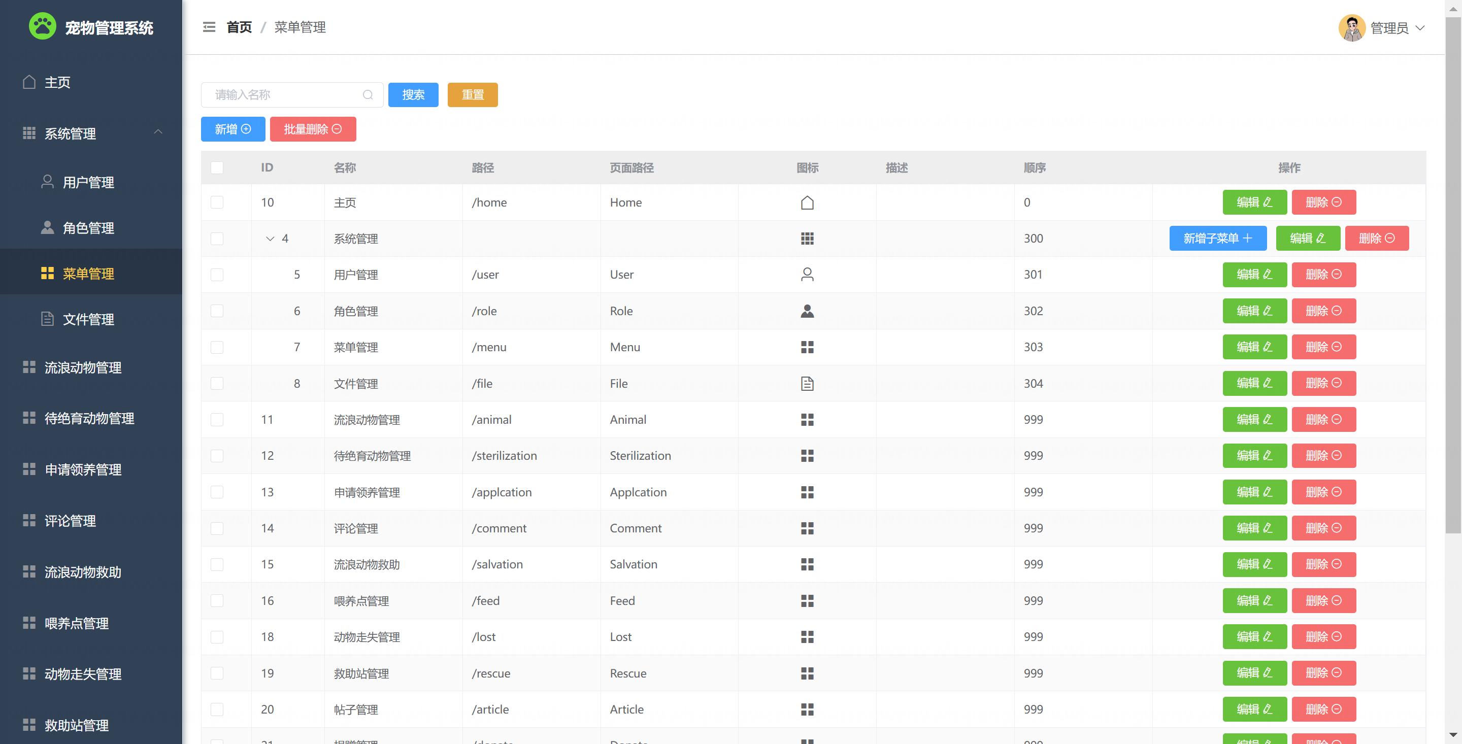 • 救助管理:流浪动物救助记录管理、救助状态更新。