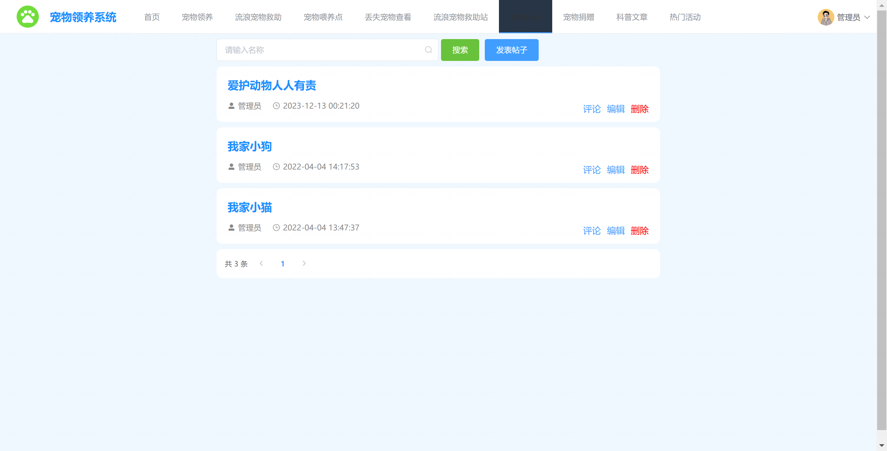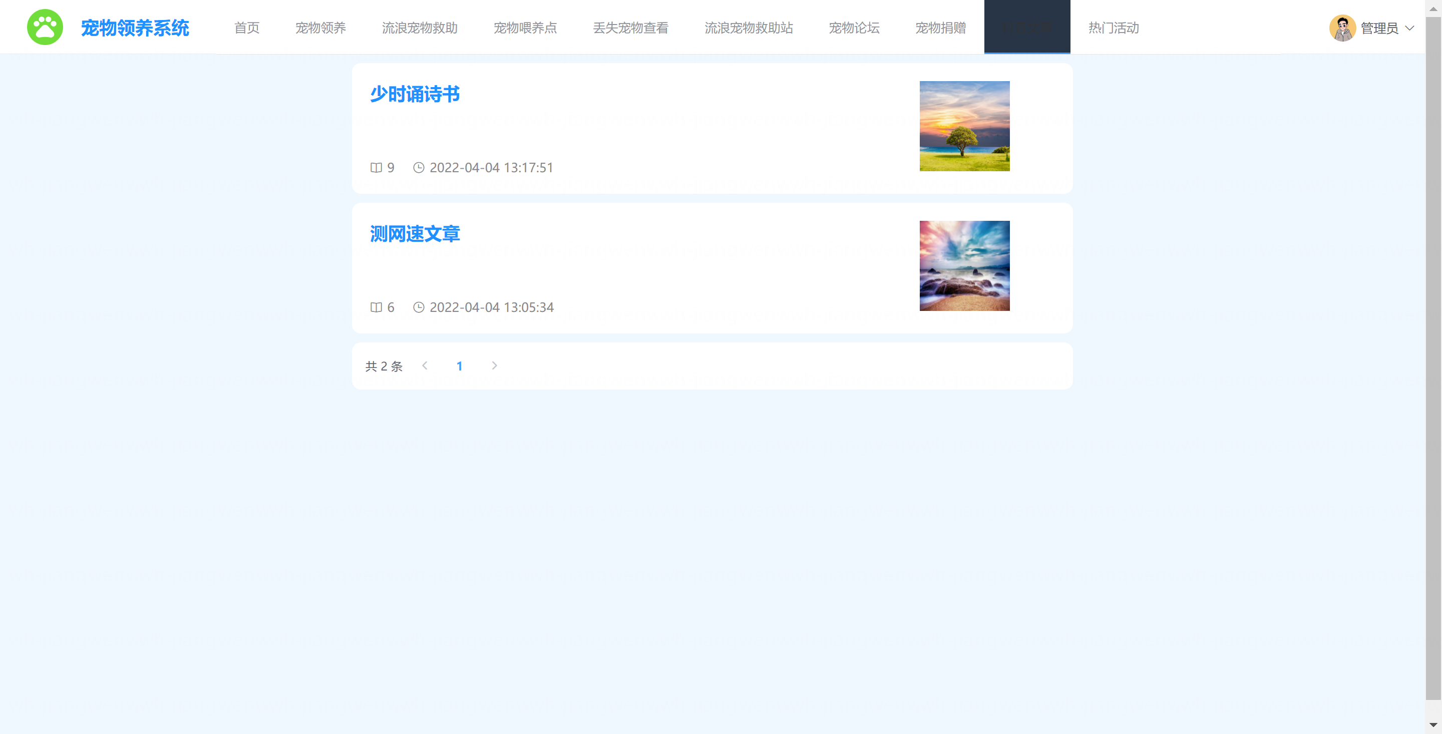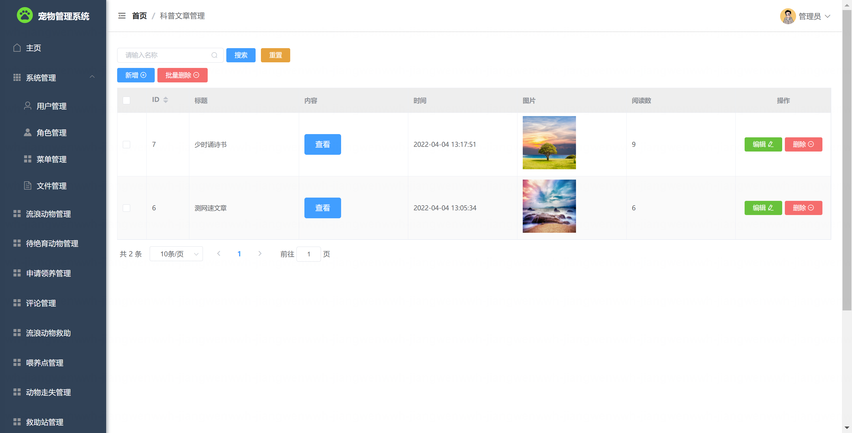 • 文章管理:宠物科普文章发布/编辑/删除,知识普及内容管理。