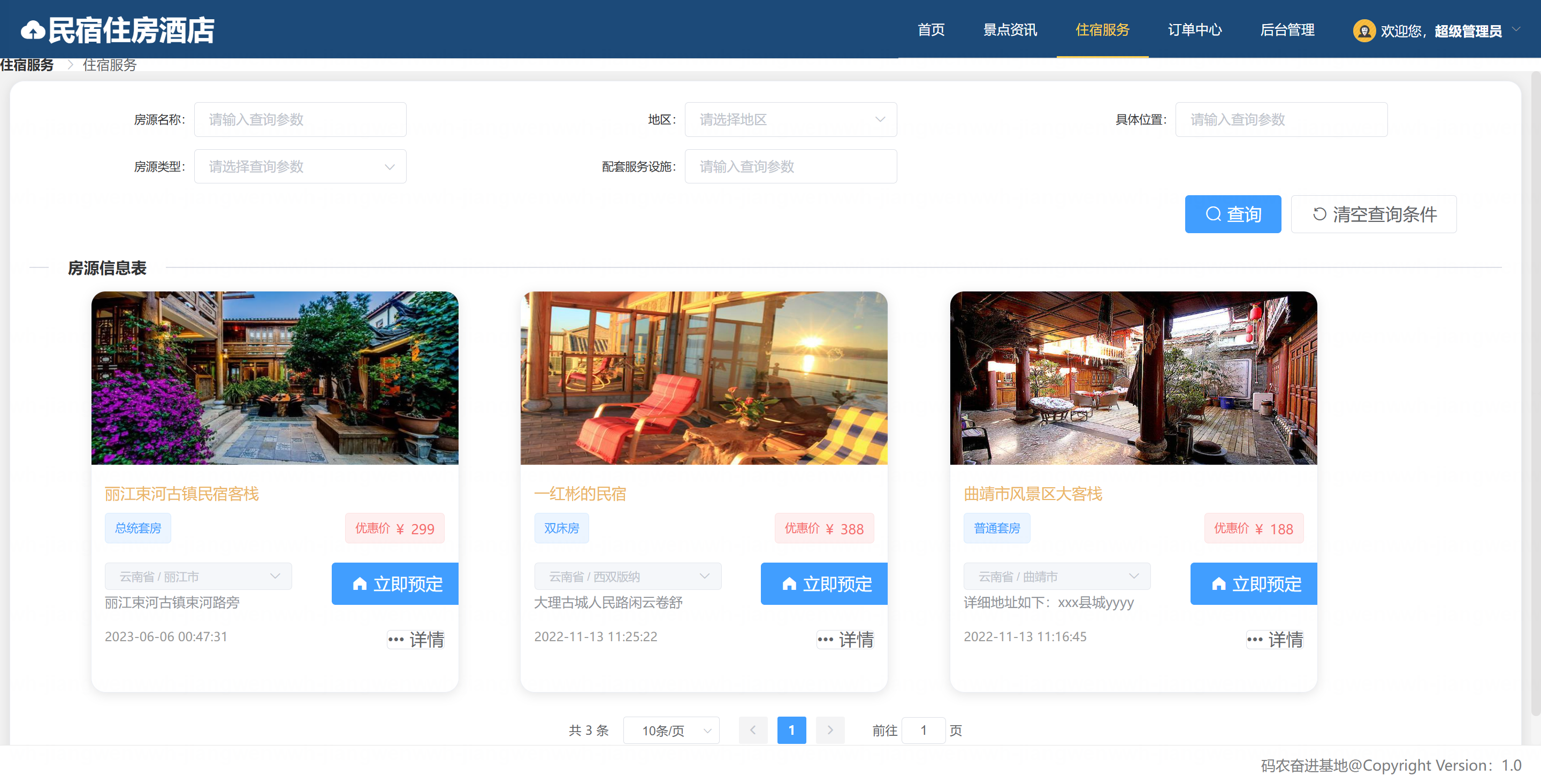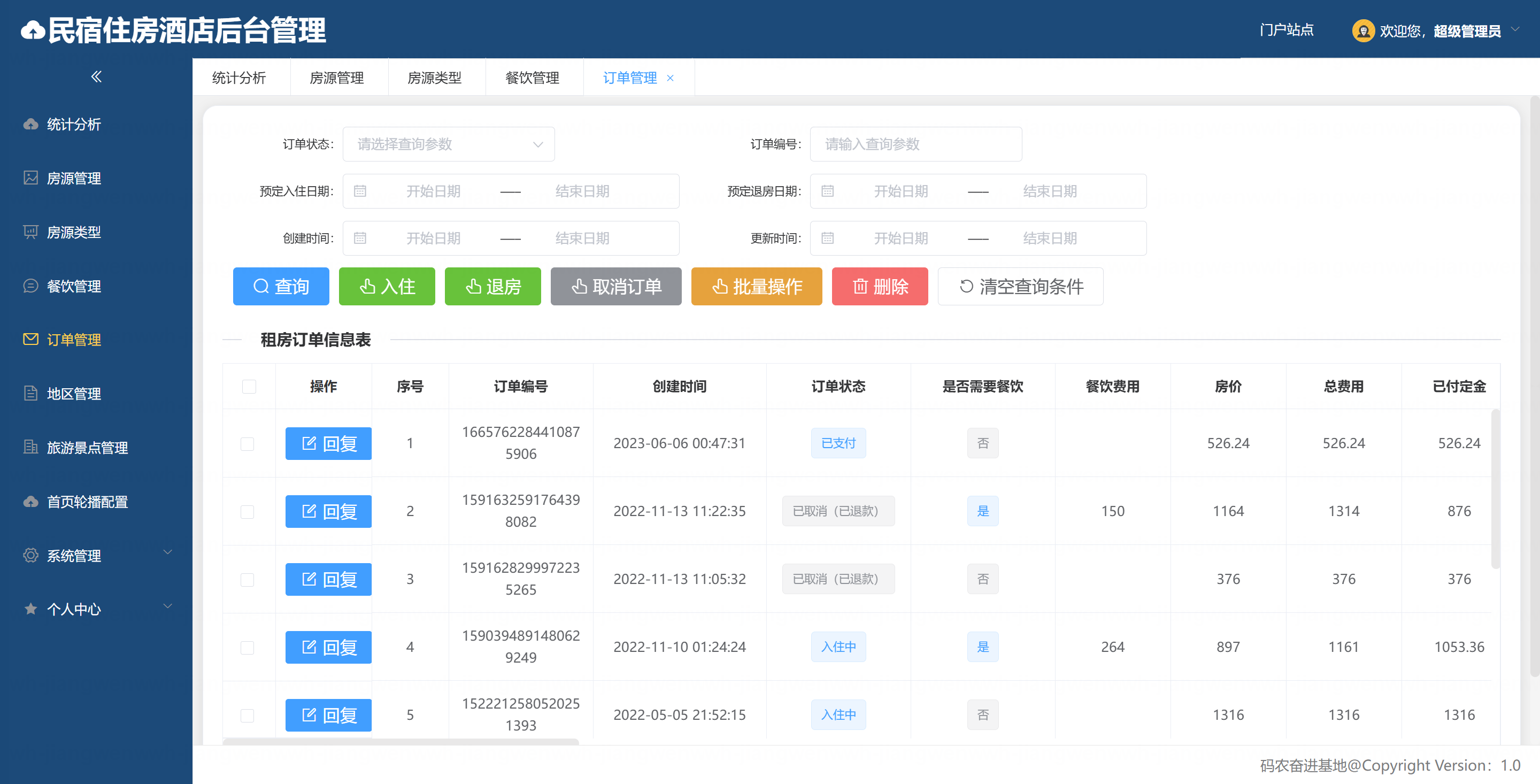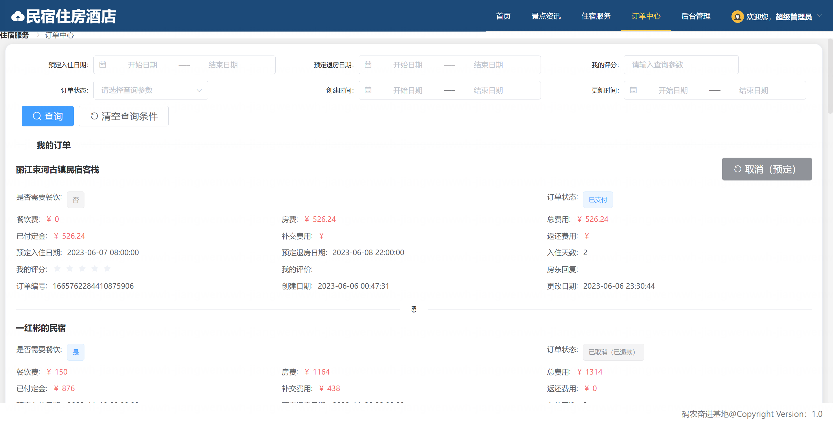 • 订单管理:住房订单管理、订单审核、评价管理、订单完成等功能。