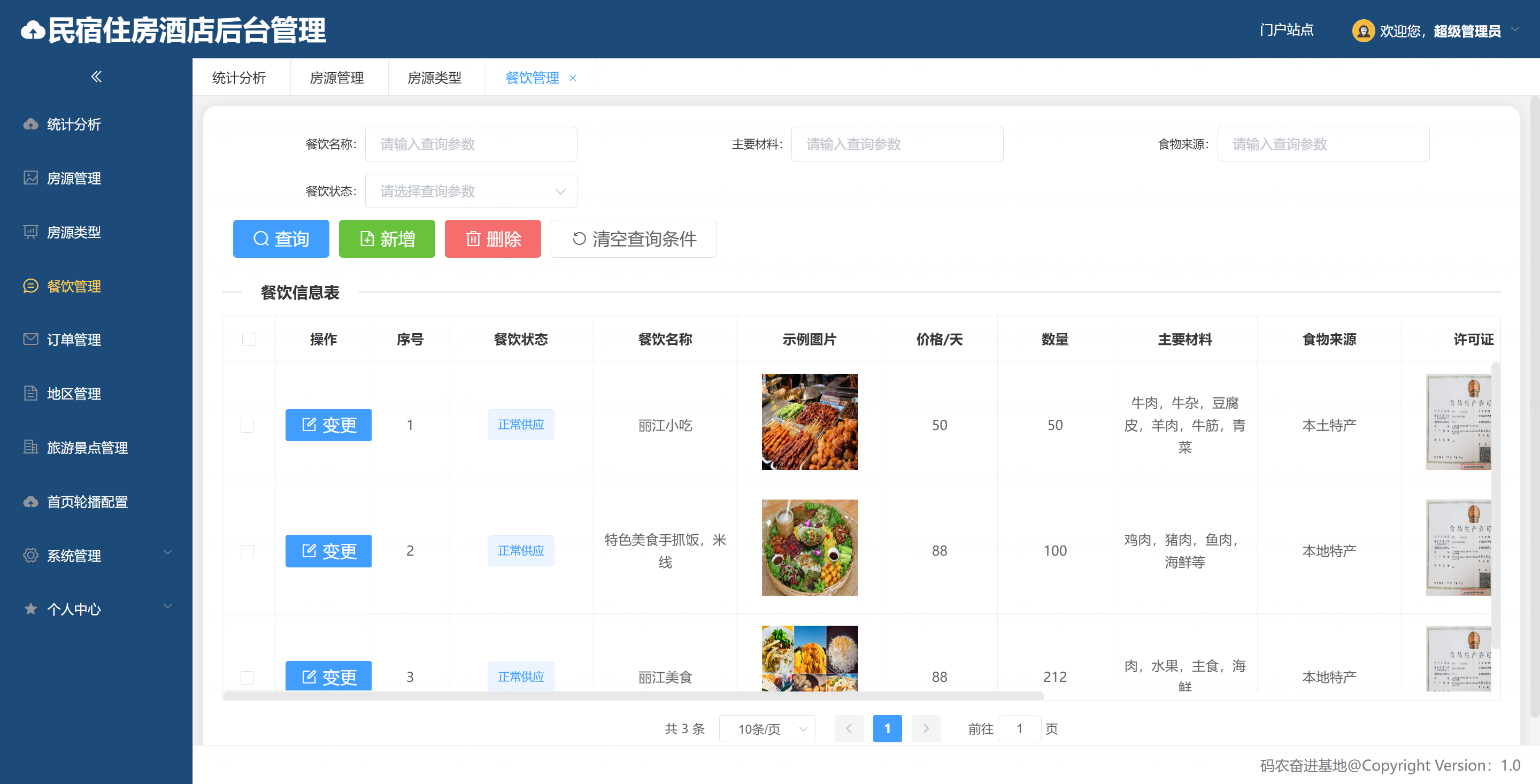 • 首页管理:轮播图管理,支持首页展示内容配置。