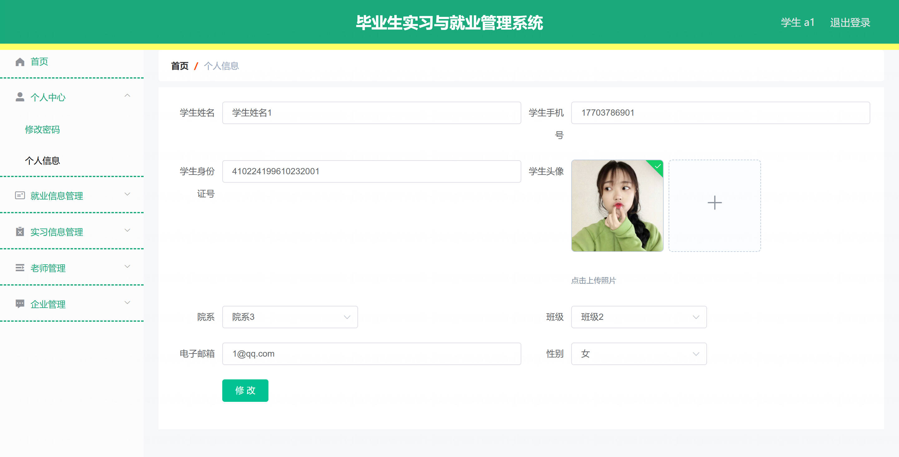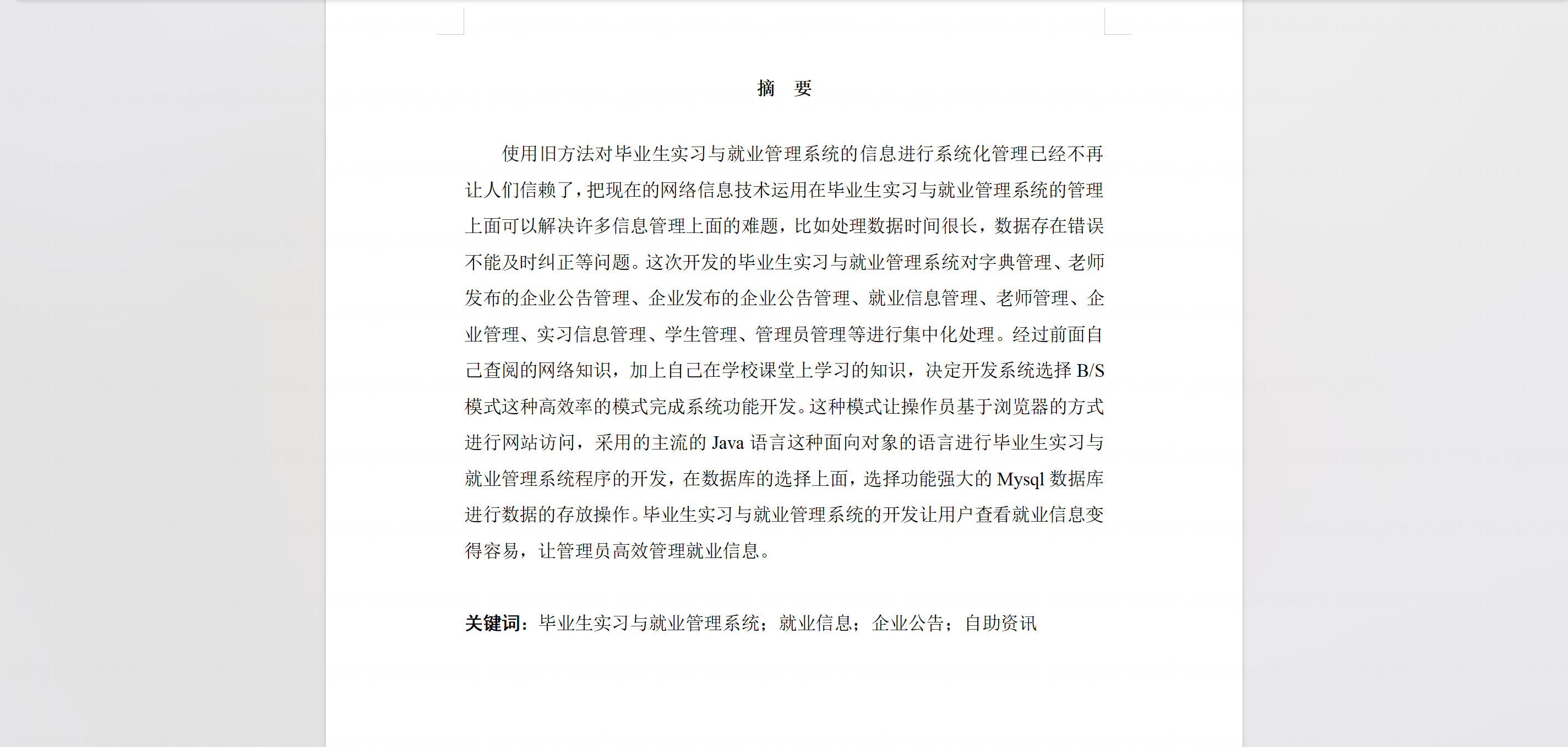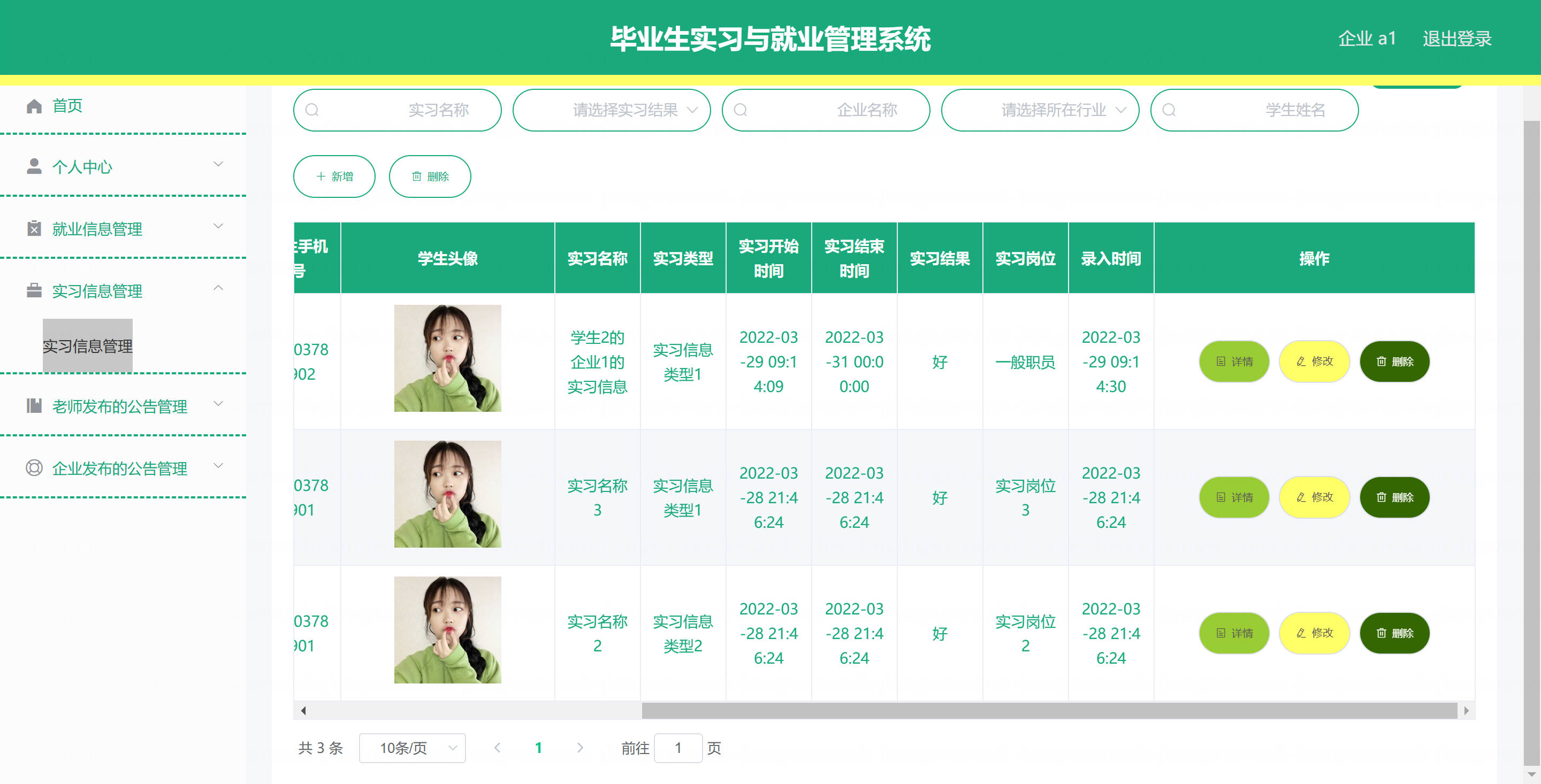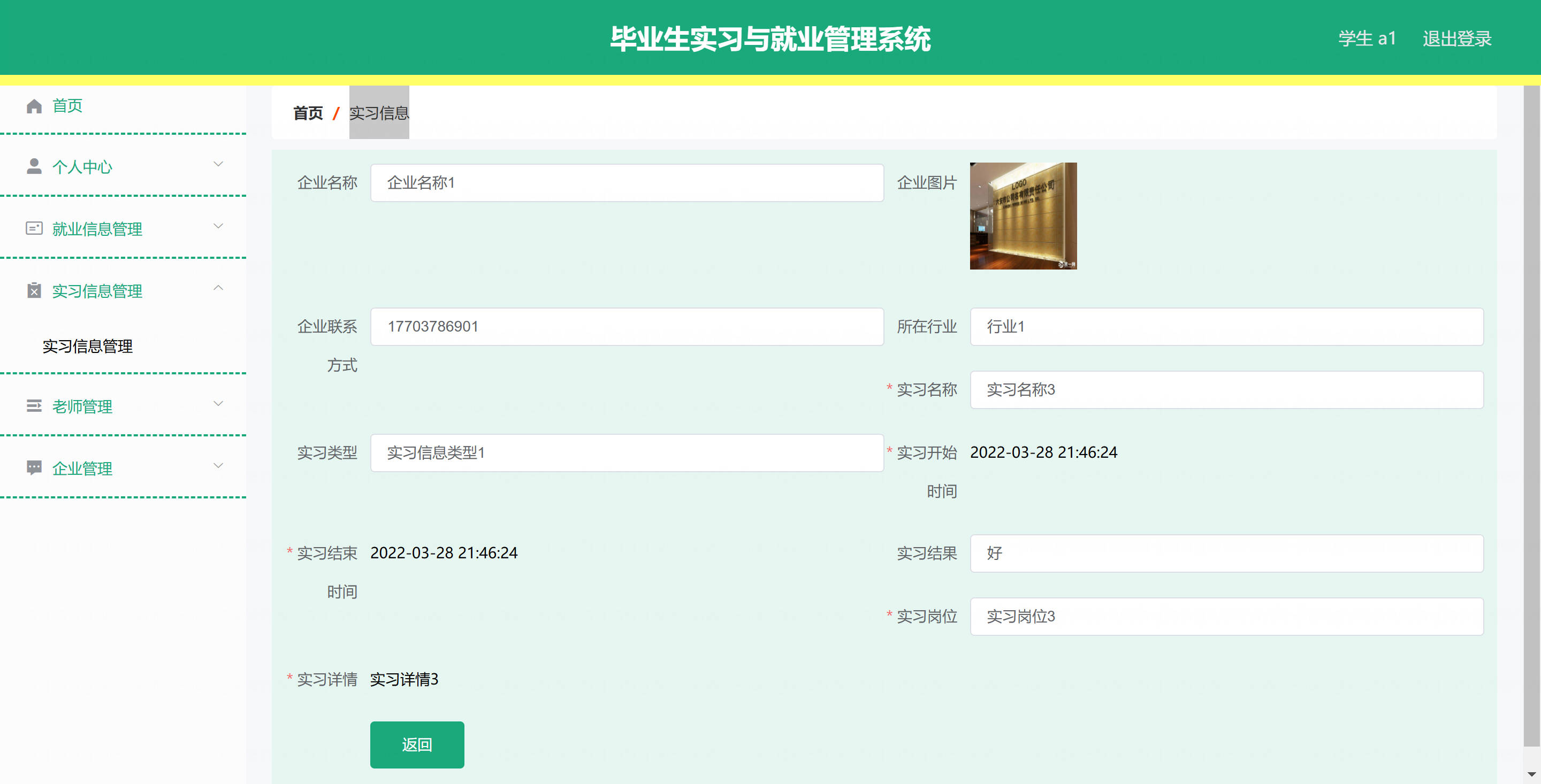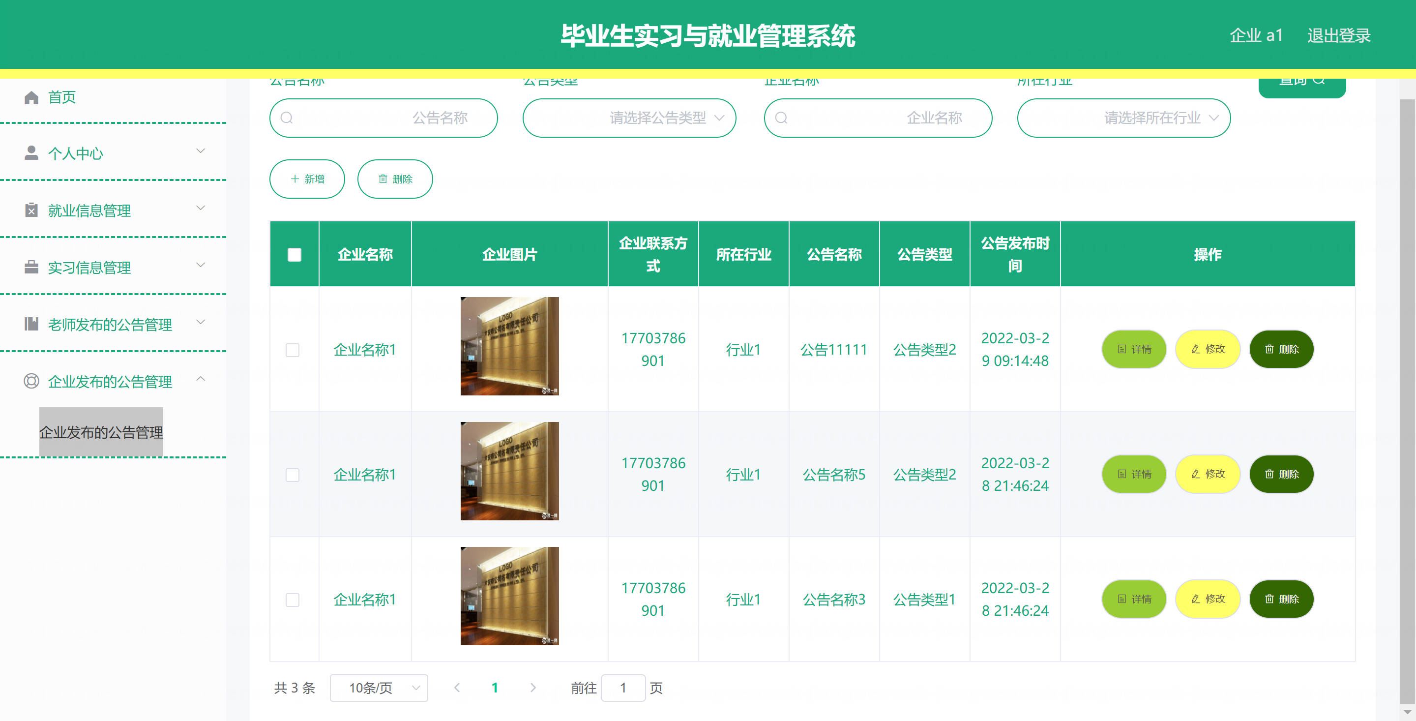 基于 Spring Boot 的毕业生实习与就业管理系统,系统角色为系统管理员、学生、教师和企业,主要功能如下
