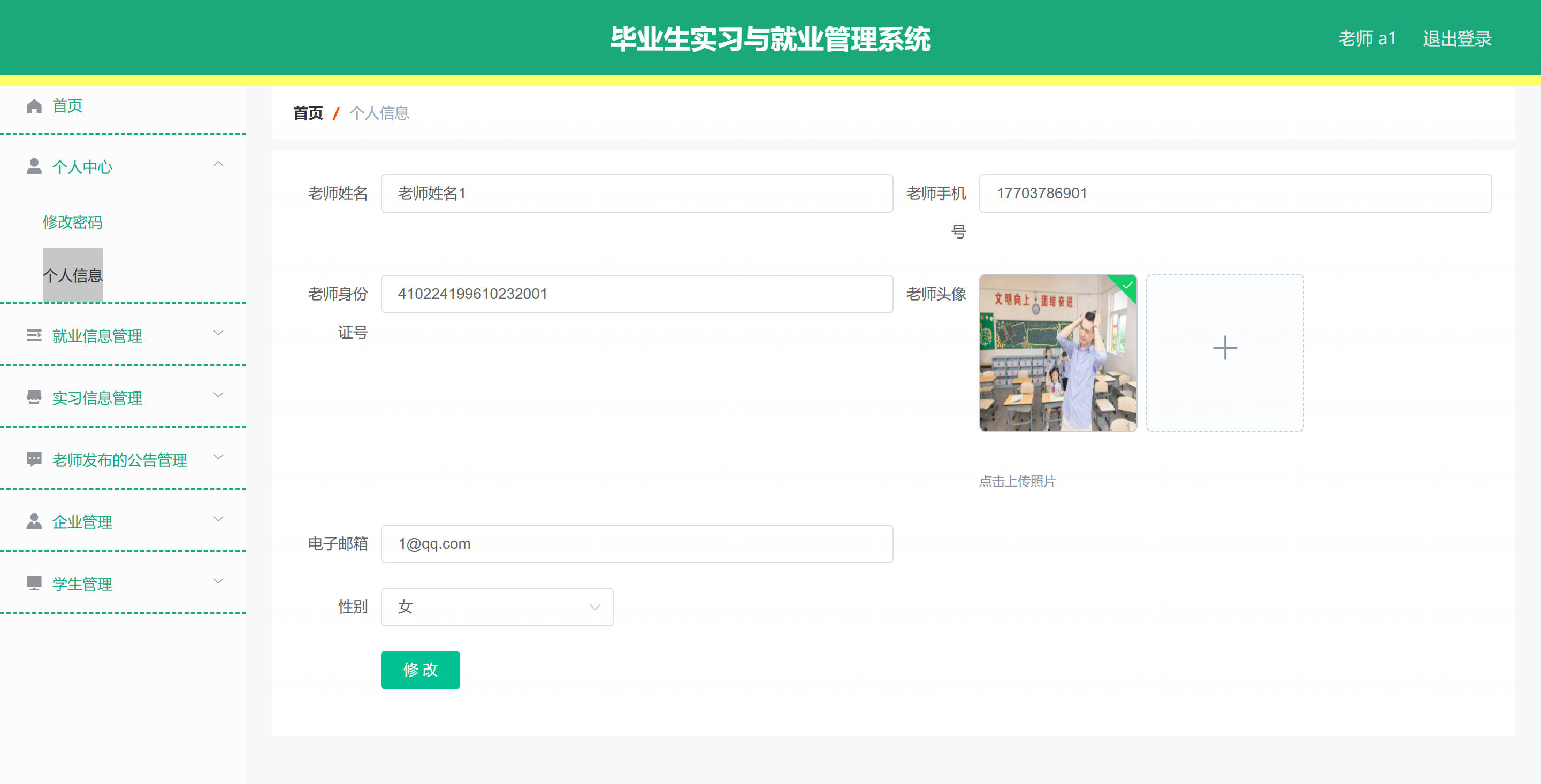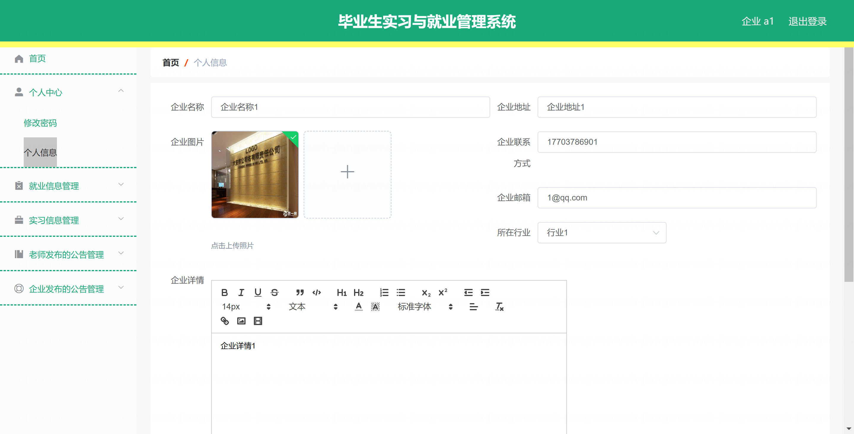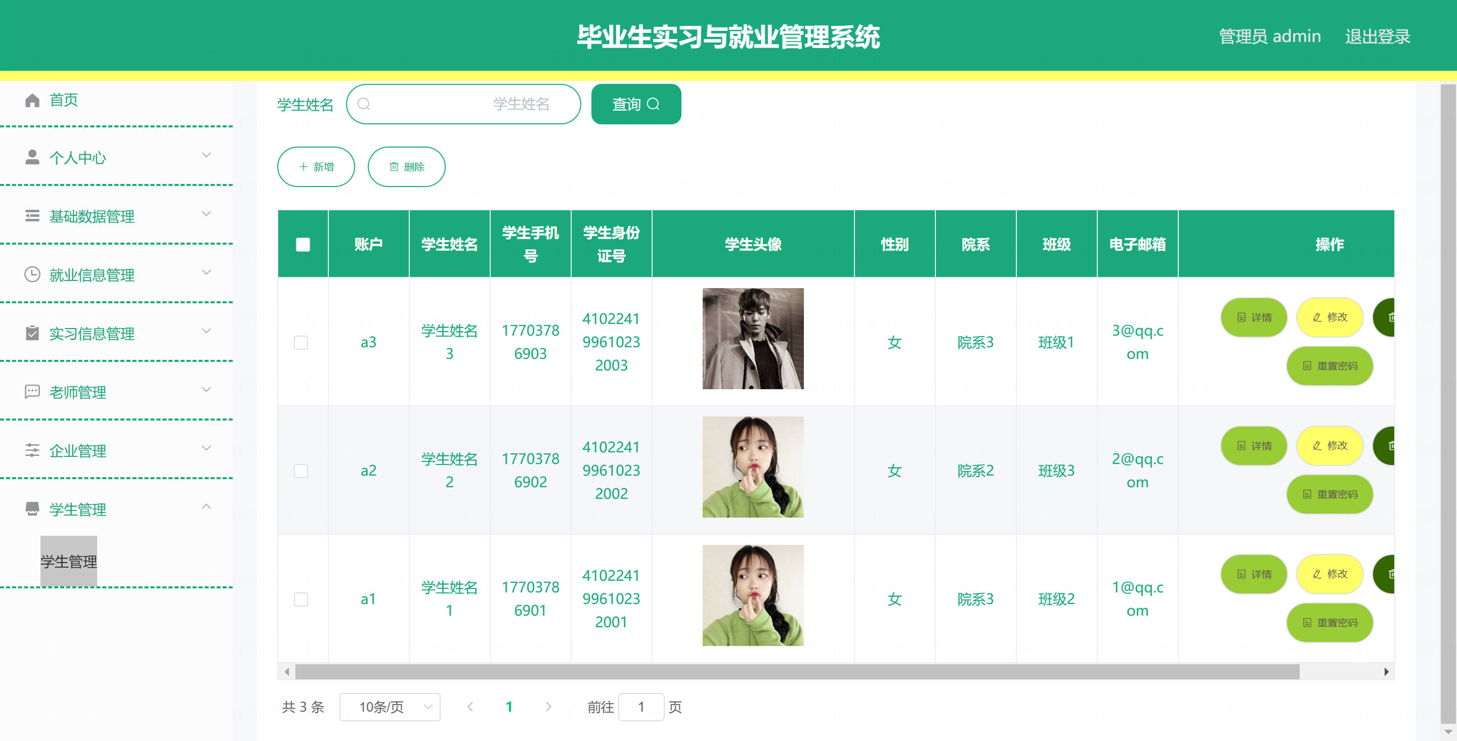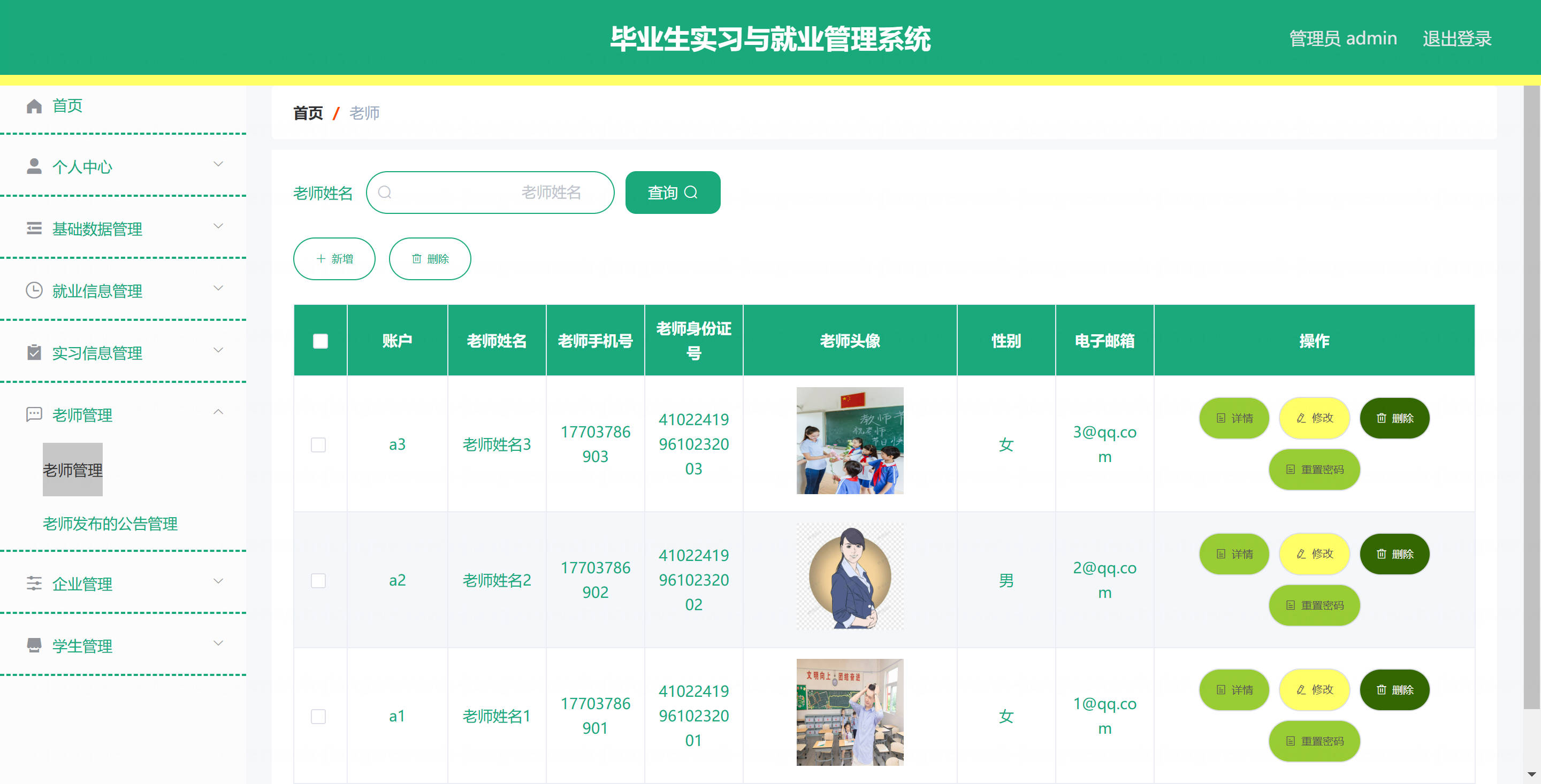 基于 Spring Boot 的毕业生实习与就业管理系统,系统角色为系统管理员、学生、教师和企业,主要功能如下