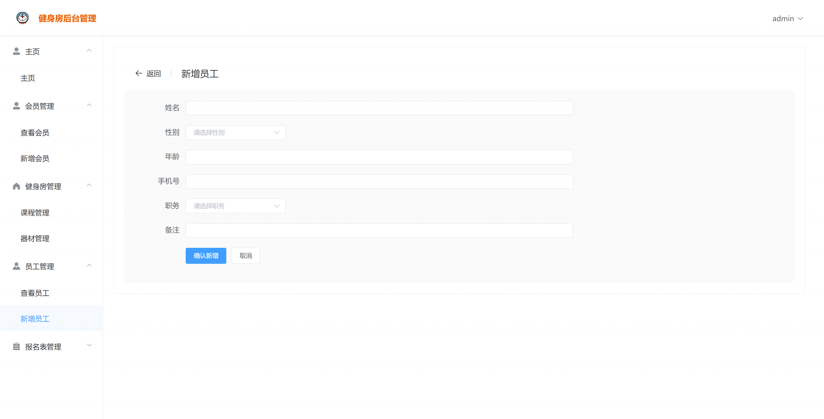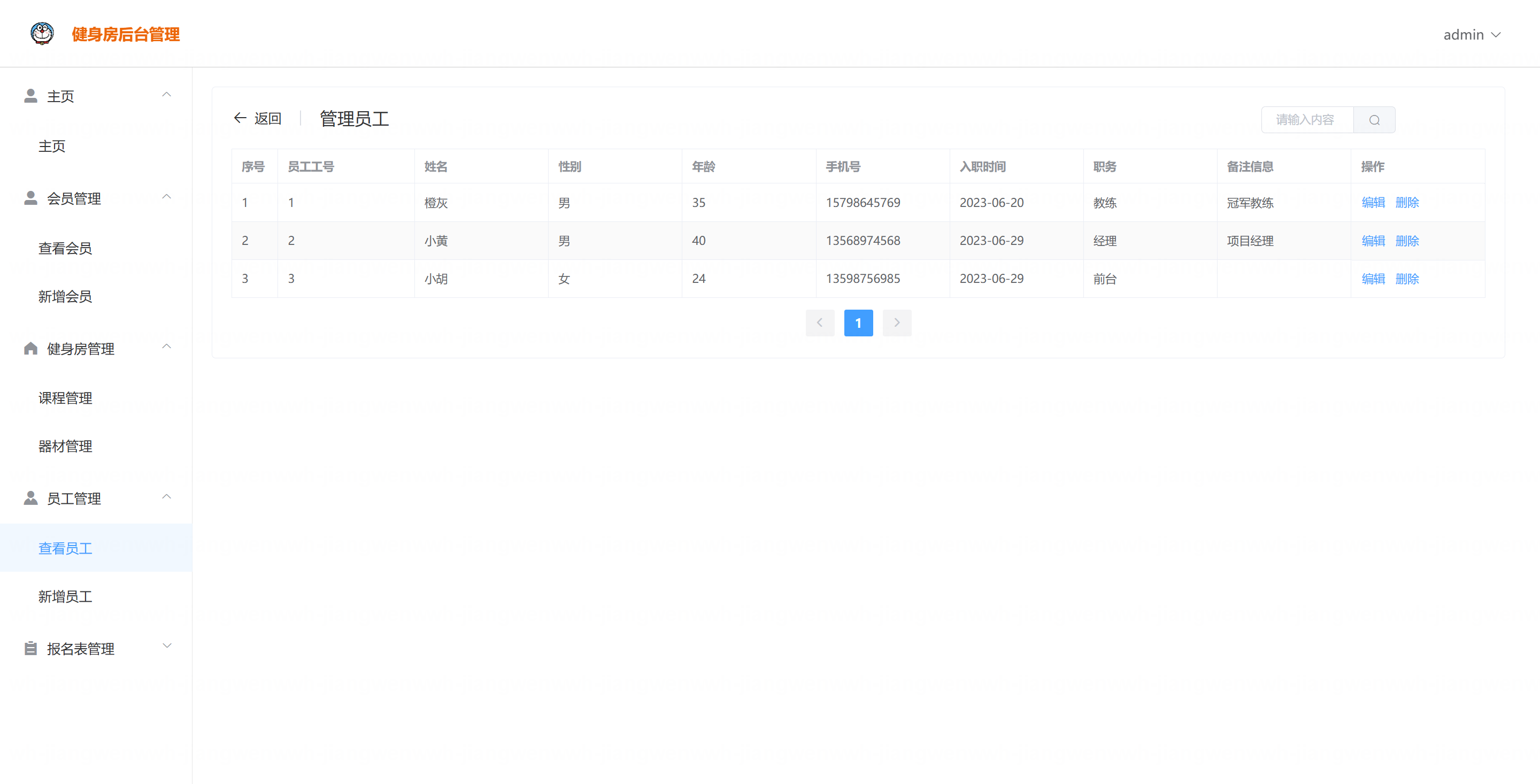 - 员工管理:对健身房员工信息的全面 CRUD 操作。